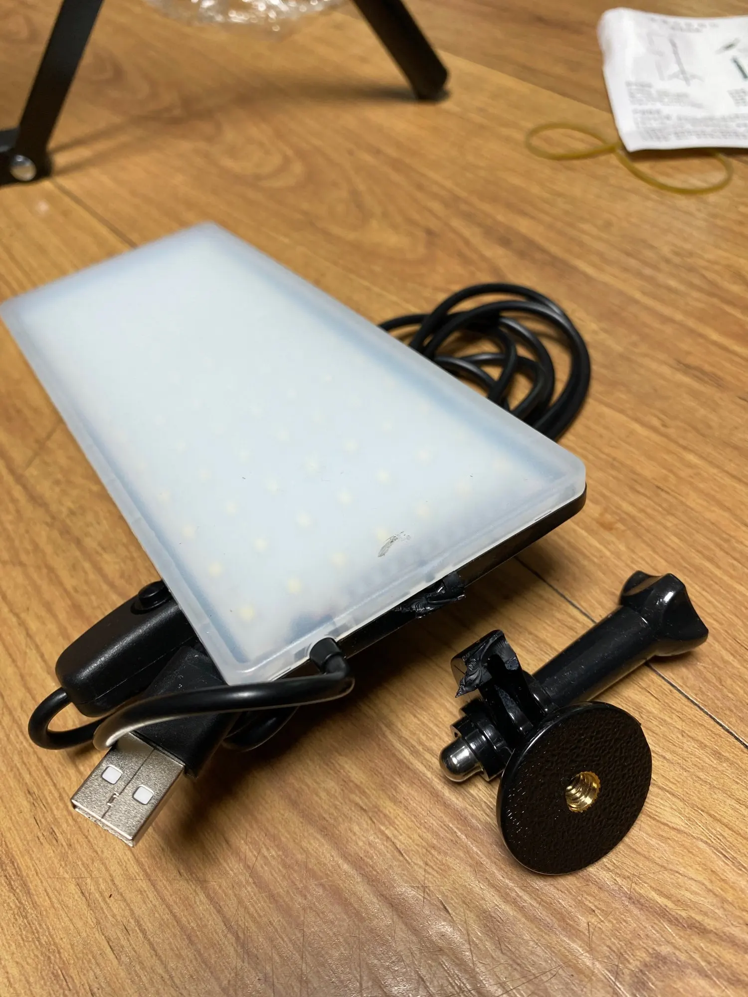 Товар хороший, но хрупкий, крепление лампы сломалось сразу же, как только начала регулировать наклон, штатив тоже загнулся при расправке