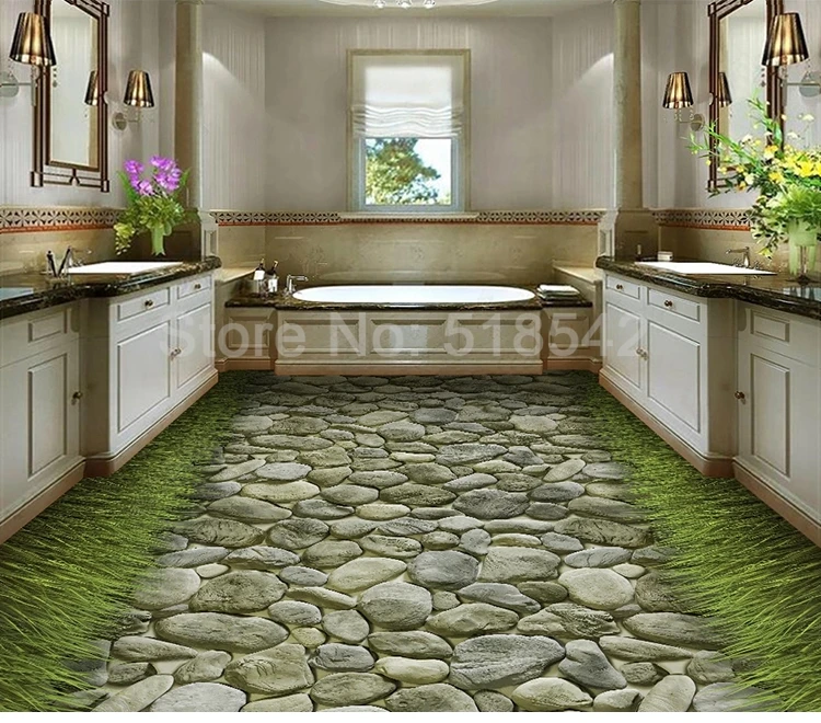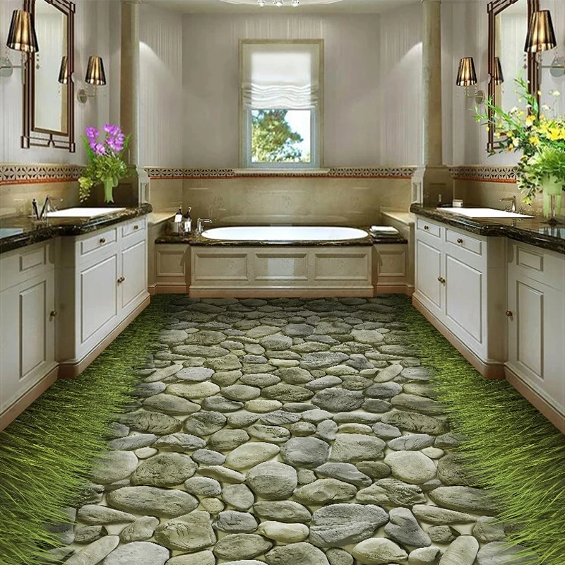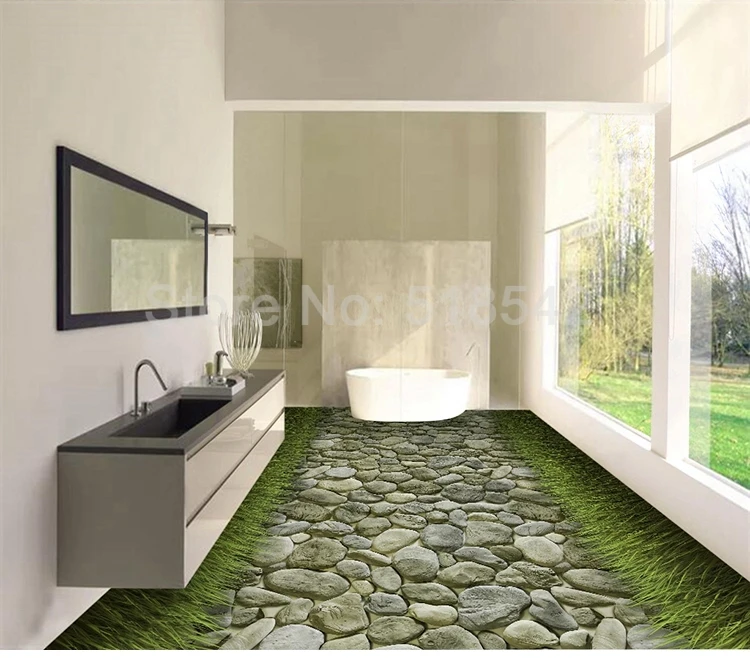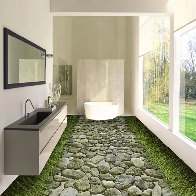 Пользовательские 3D наклейки на пол каменная дорога зеленая стенная роспись с травой самоклеящиеся водонепроницаемые обои для ванной и гостиной