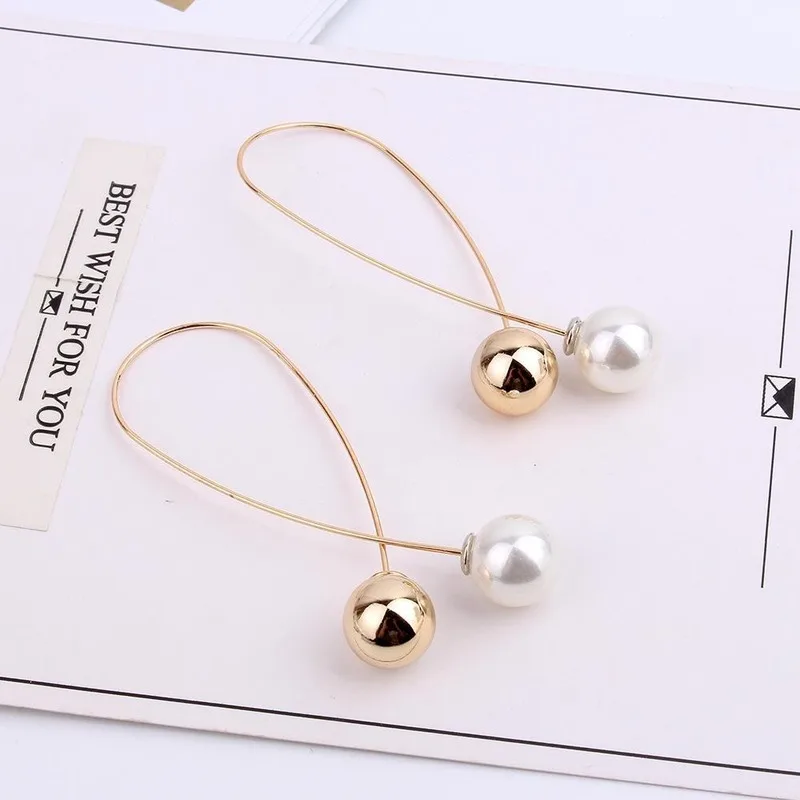 Темпераментные двухсторонние длинные серьги женские милые металлические минималистичные жемчужные серьги ручной работы