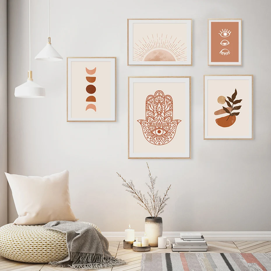 Абстрактная Картина на холсте в стиле бохо, настенное украшение для...
