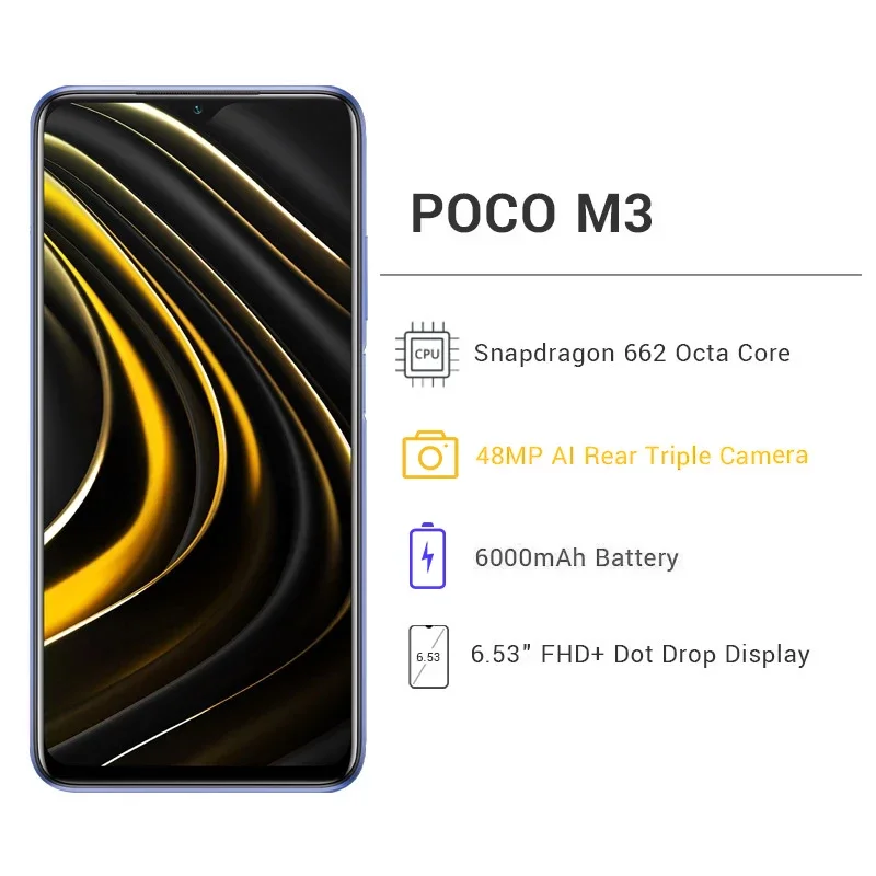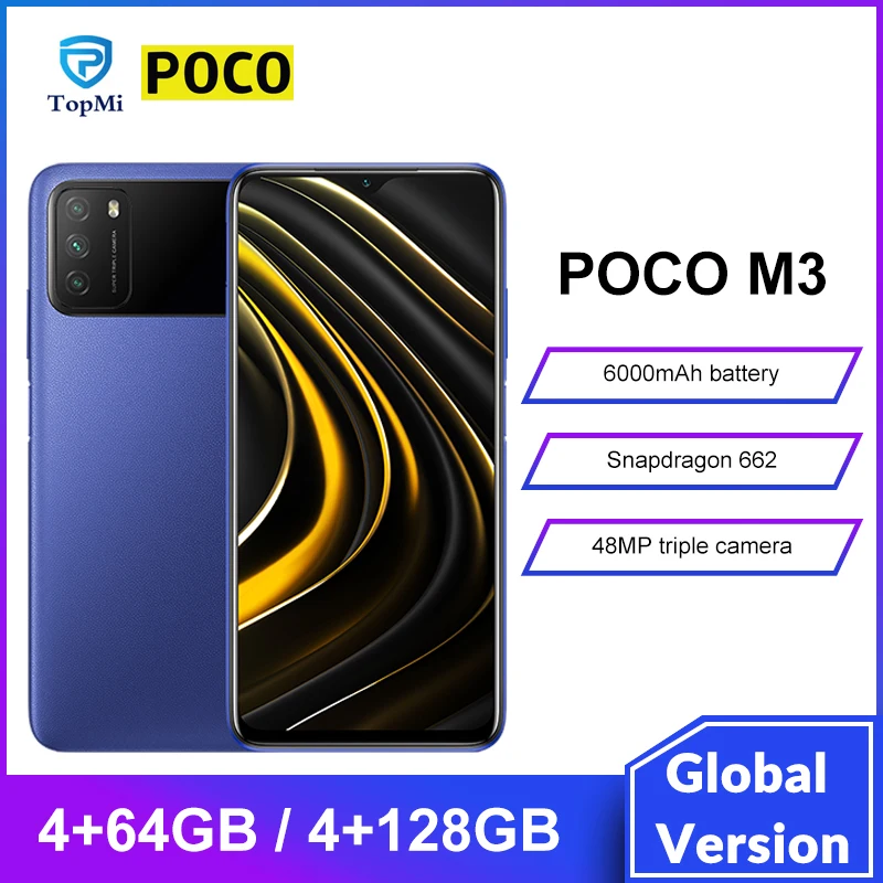 Смартфон POCO M3, экран Глобальная версия дюйма FHD +, 4 Гб 64 Гб128 ГБ, Восьмиядерный процессор Snapdragon 662, 6000 мА ч, камера 48 МП, экран 6,53 дюйма