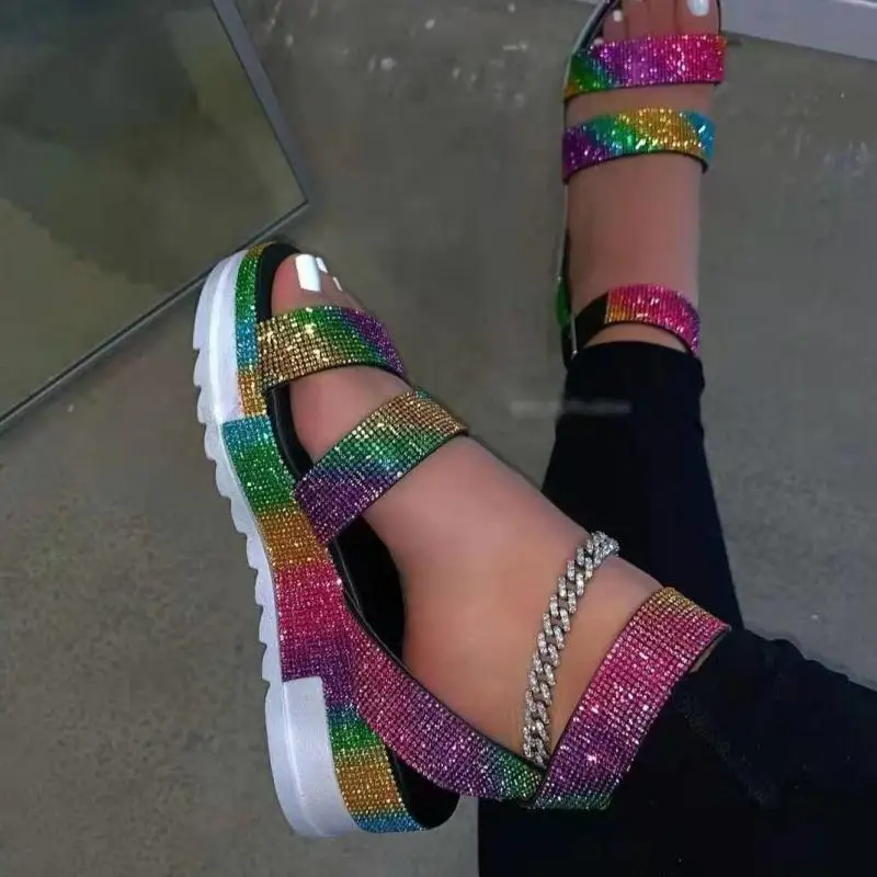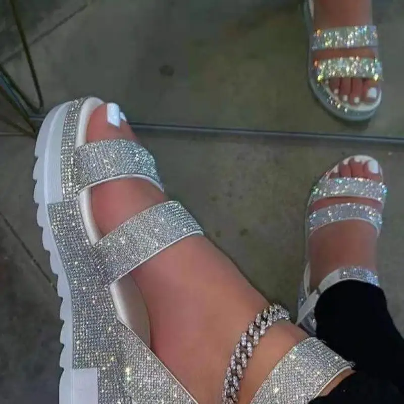 Женские сандалии, лето 2021, стразы, шлепанцы, открытый носок, размера плюс, 36-43, сандалии, женские