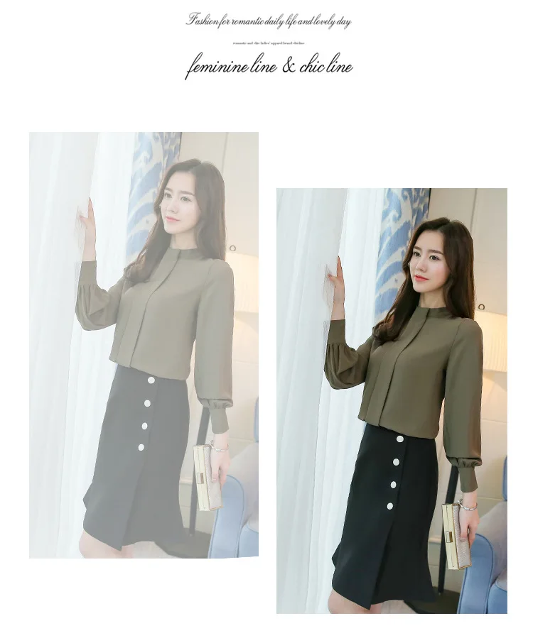 Блузка женская шифоновая с воротником-стойкой, свободная рубашка с длинными рукавами-фонариками, размера плюс 3XL, весна-осень 2021