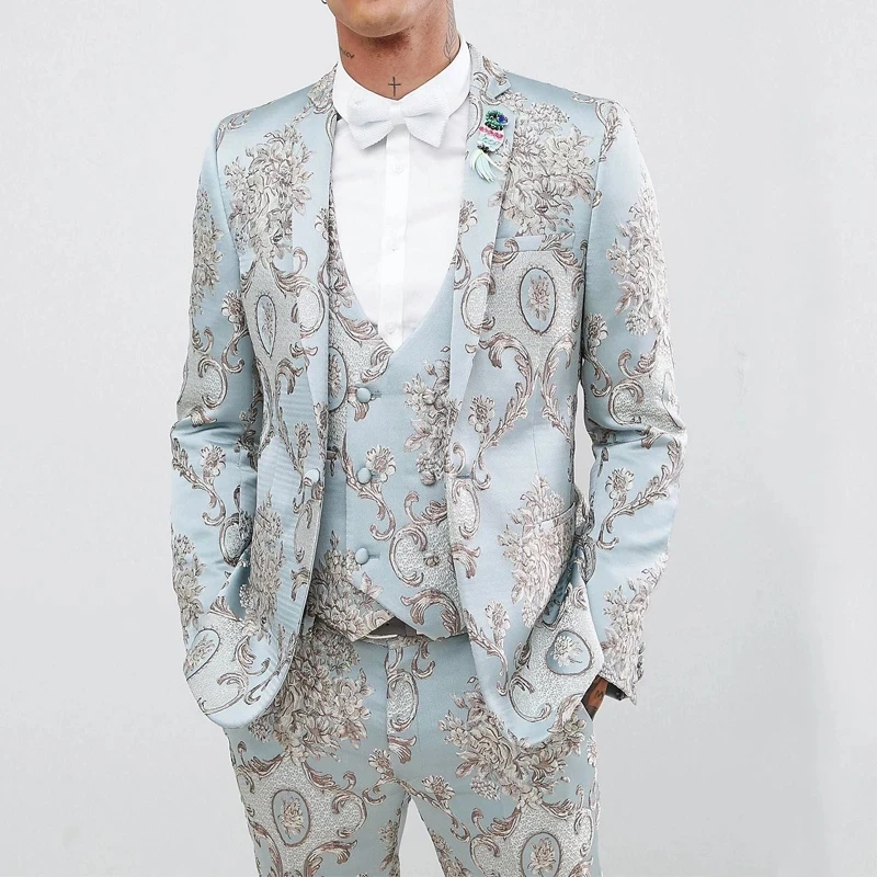 Новейший дизайн, тисненый жаккардовый мужской костюм, модное облегающее платье для жениха, свадьбы, вечеринки, 3 предмета, мужской костюм (пиджак + жилет + брюки)