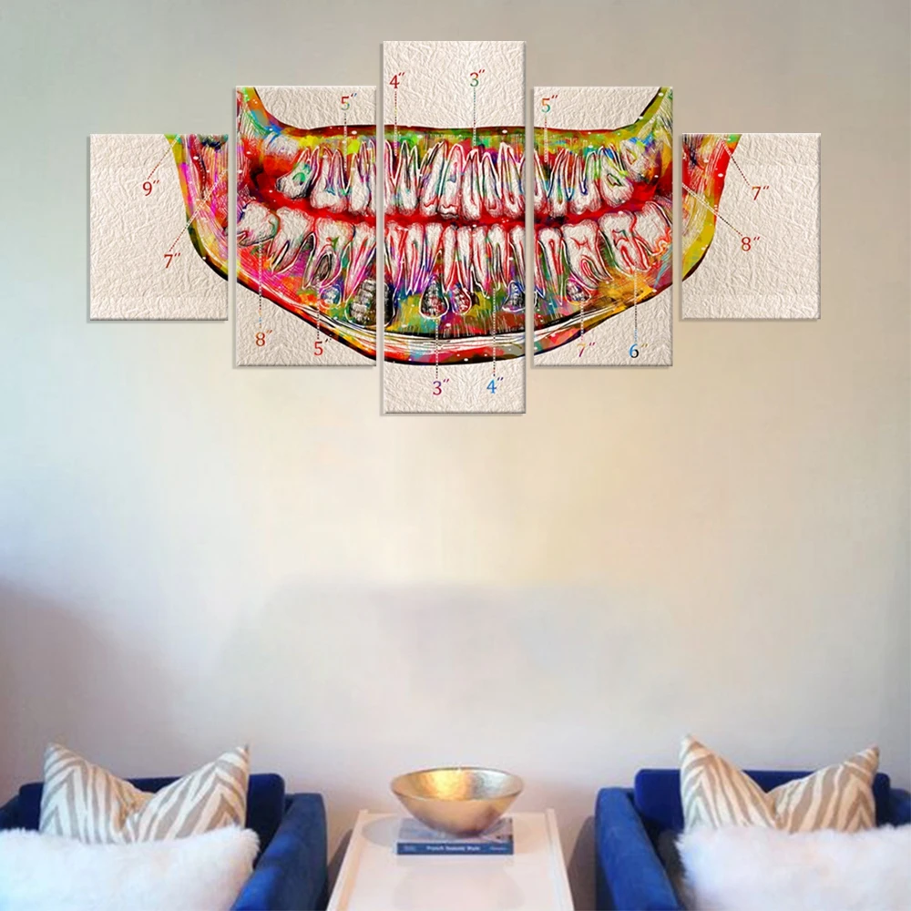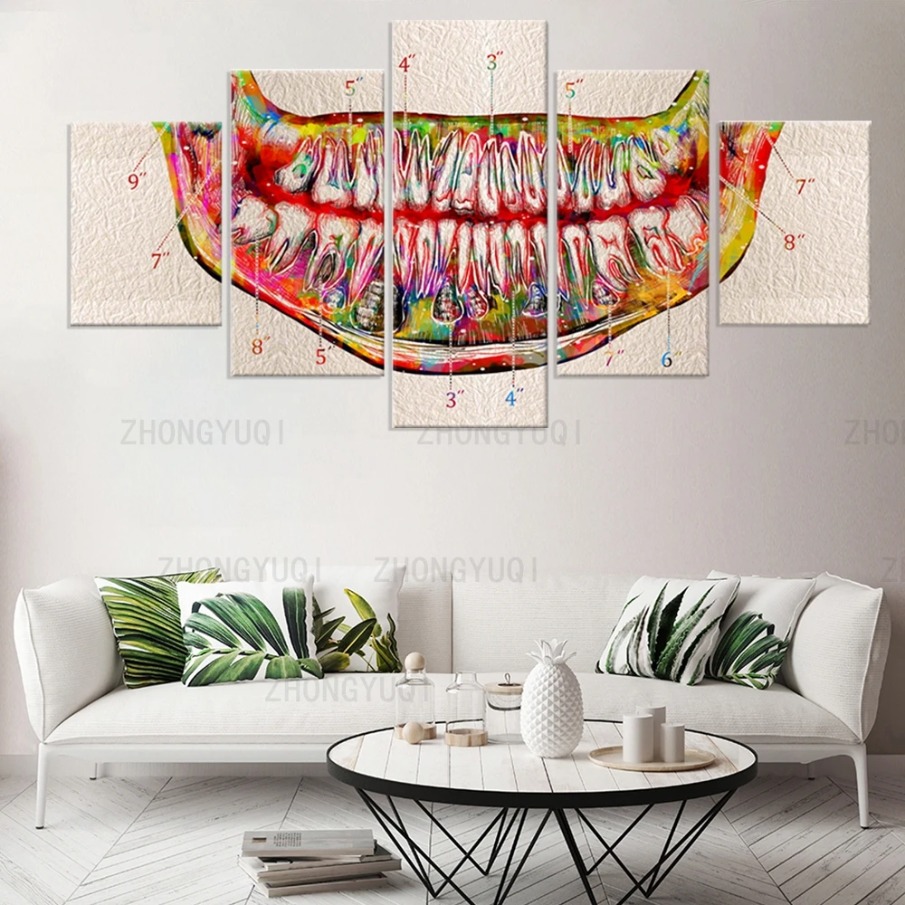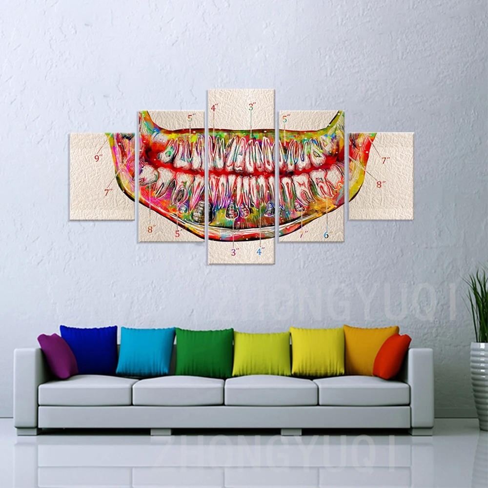 Большие постеры и принты на холсте, 5 шт., акварельные зубы, анатомическая Художественная печать, домашний Декор, живопись, стоматологическая клиника, медицинская картина