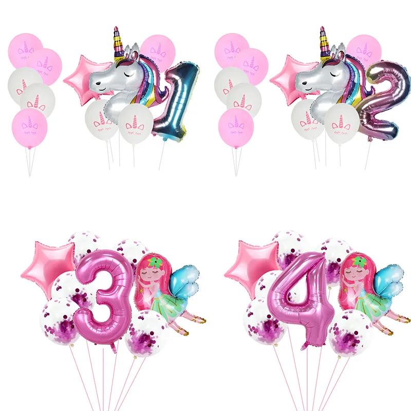 Воздушные шары в виде единорога, цифры размером 1, 2, 3, 4, 5, 6, 7...