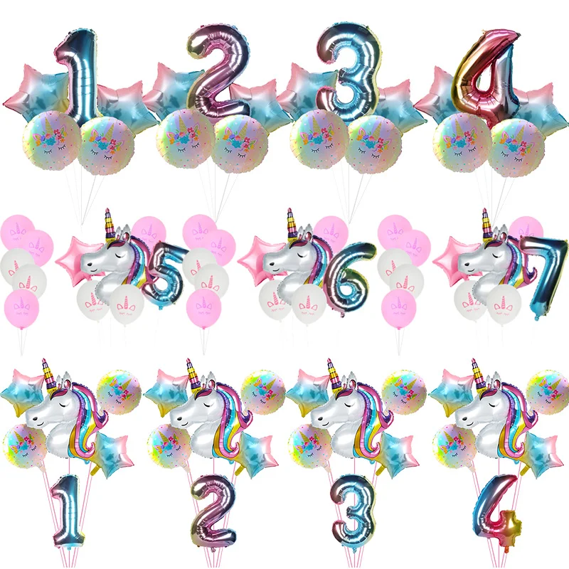 Единорог с днем рождения, вечерние воздушные шары с номером, радуга, единорог, для девочек, день рождения, воздушный шар, набор для маленьких девочек, для душа, баллон