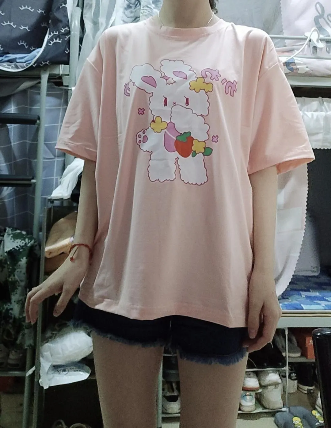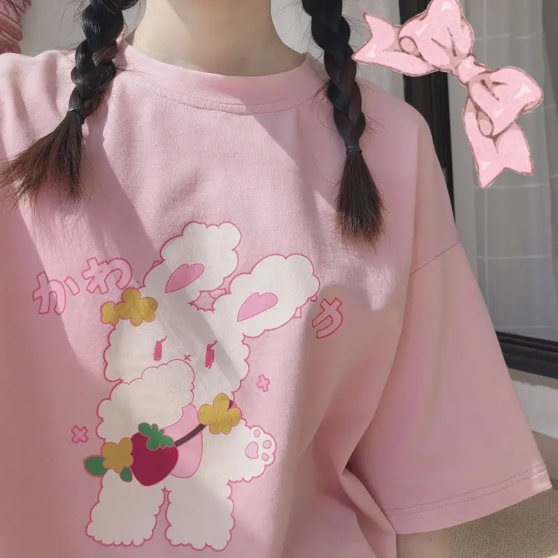 Футболка женская весенняя, оверсайз, с коротким рукавом и принтом, розовая, 2021