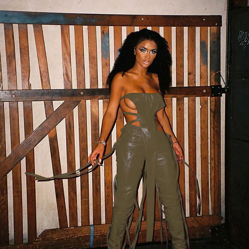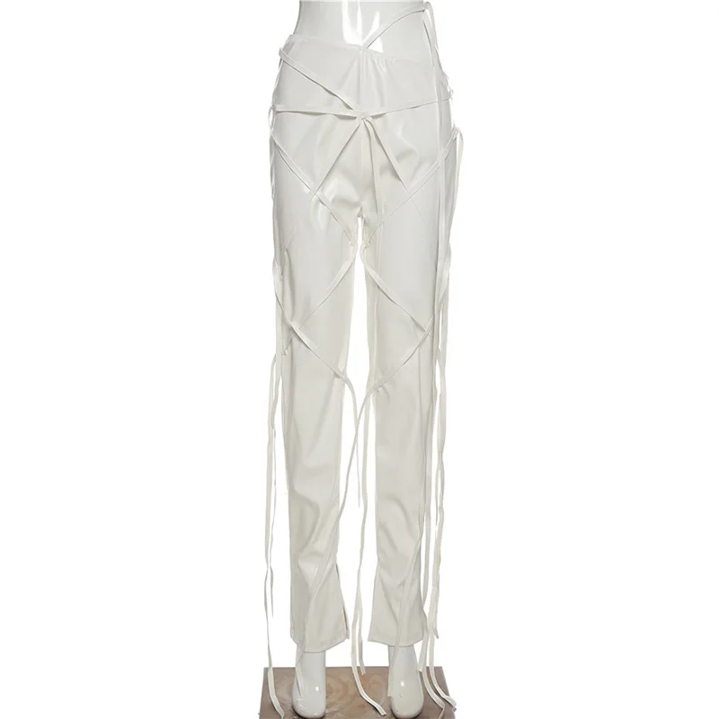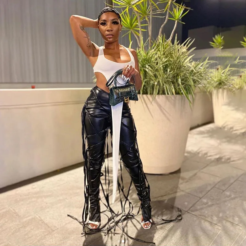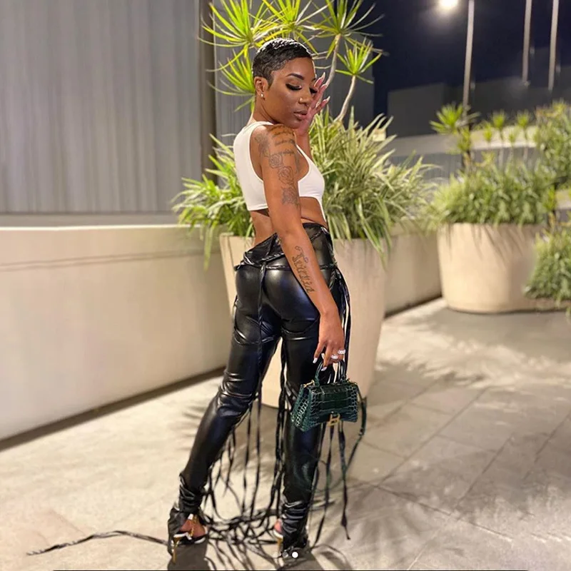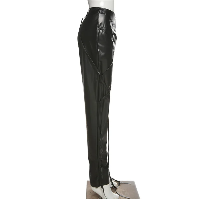 Брюки женские повседневные из искусственной кожи, джоггеры на завязках, спортивные штаны с завышенной талией, однотонная одежда на весну
