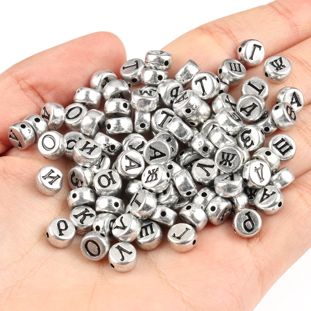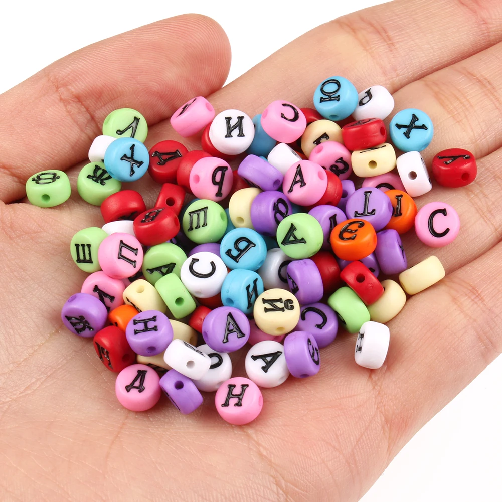 Бусины разноцветные акриловые с русскими буквами 4 х7 мм, плоские круглые бусины с отверстием насыпью для изготовления ювелирных изделий, браслетов, цепочек сделай сам, 200 штук