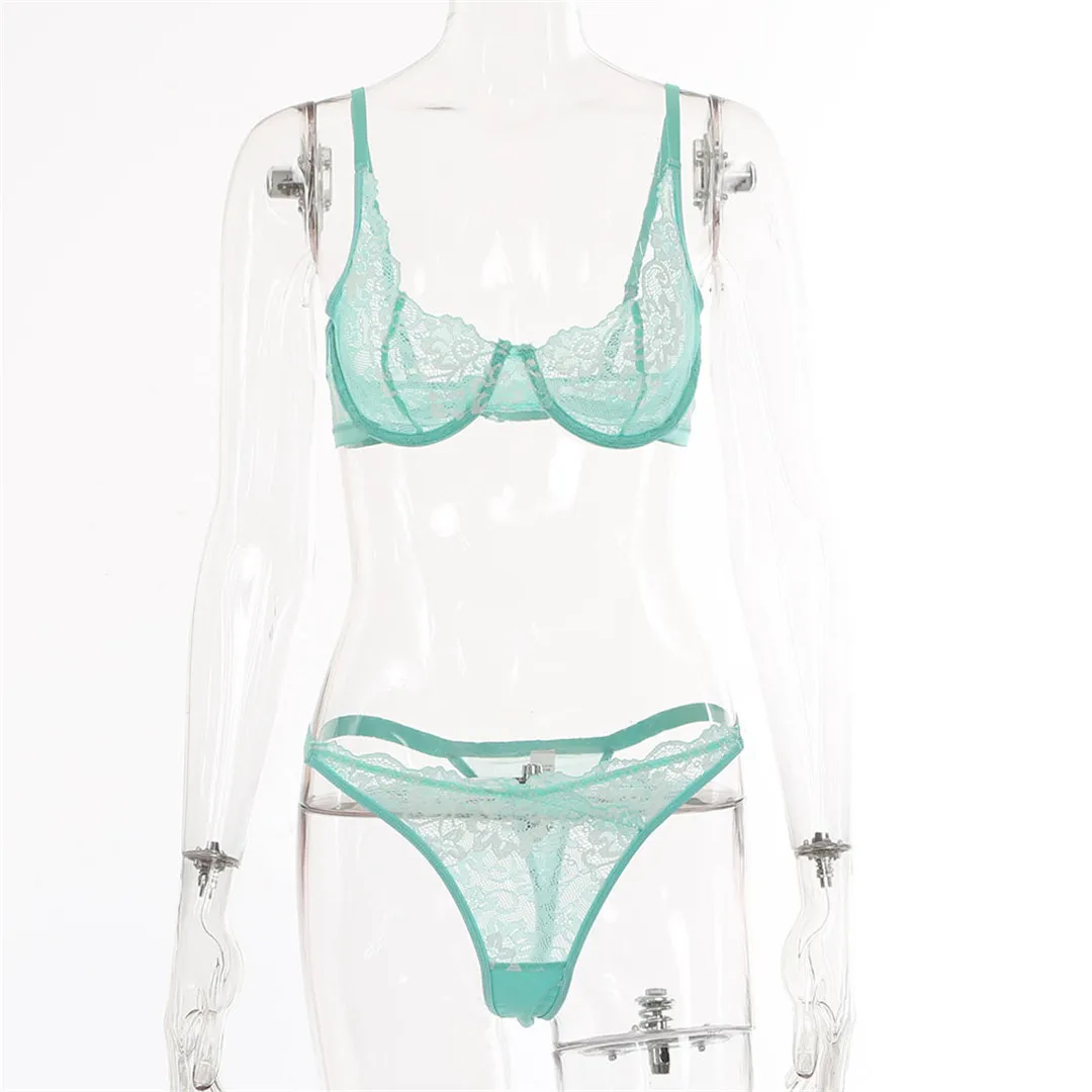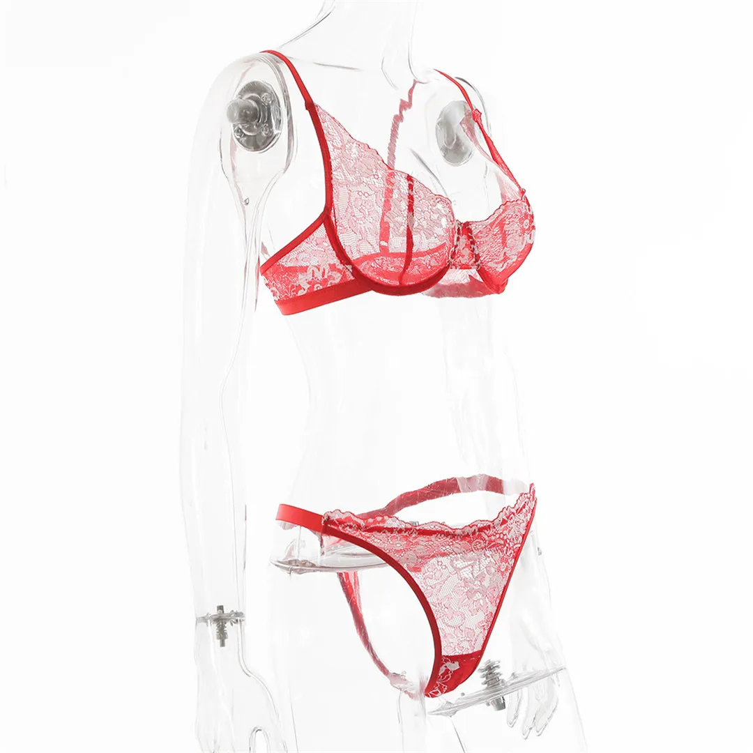 Прозрачный Женский комплект женское кружевное белье, сексуальное эр...