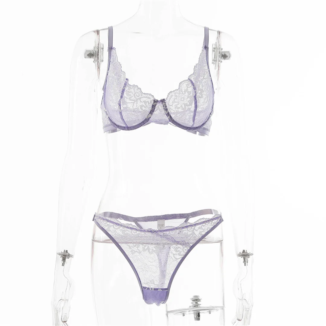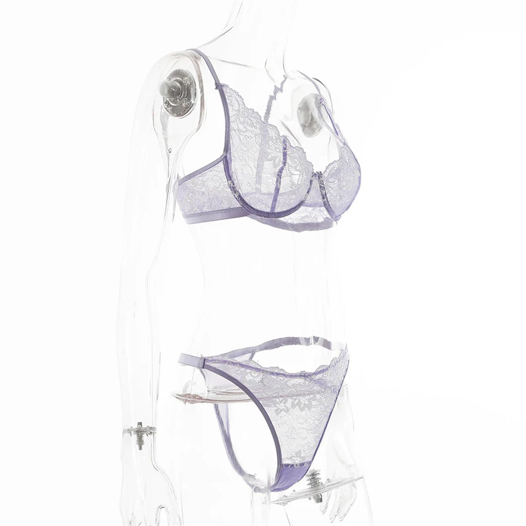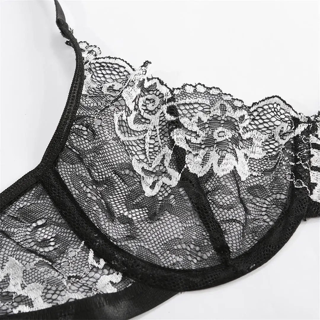 Комплект женского кружевного нижнего белья, прозрачный бюстгальтер,...