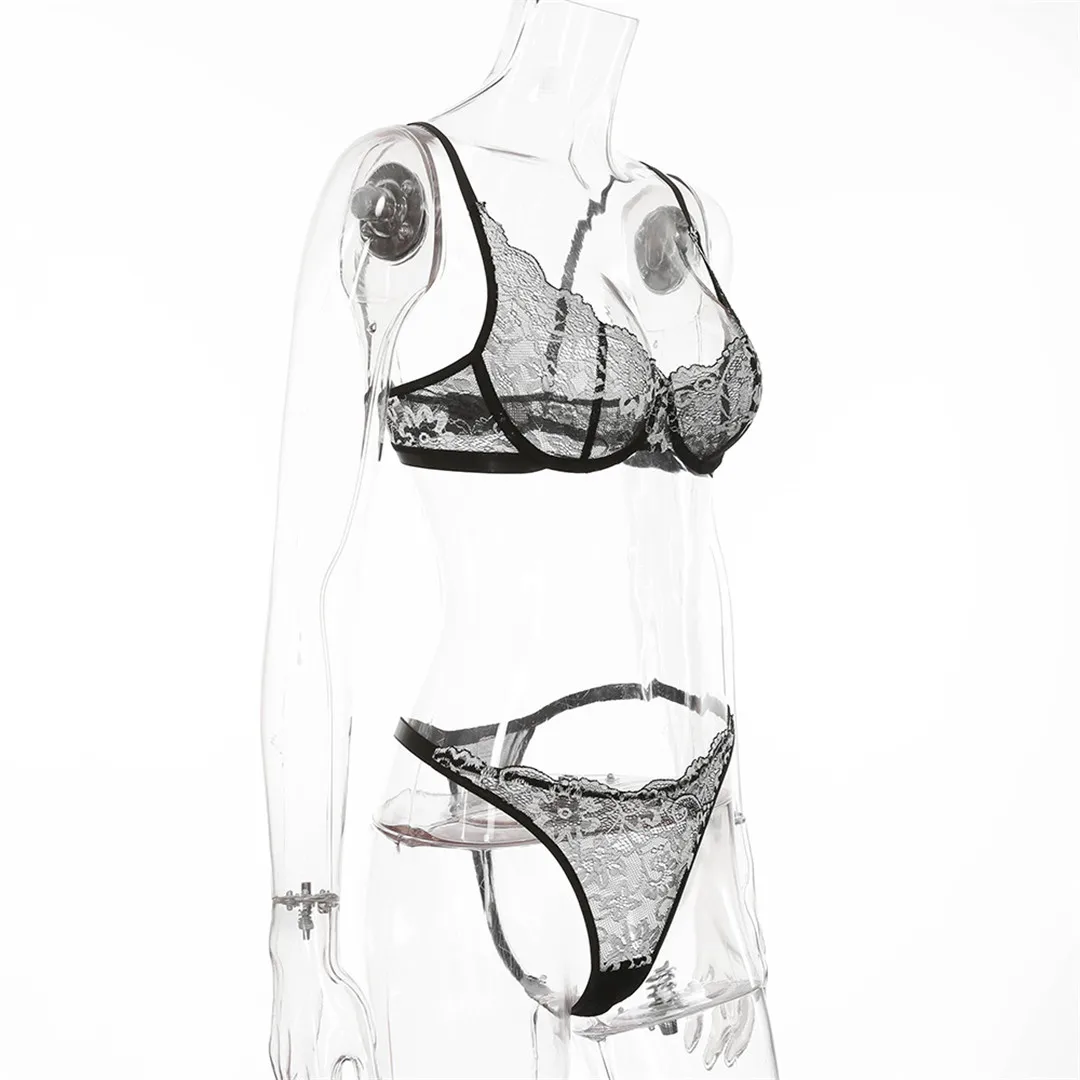 Комплект женского нижнего белья, прозрачный кружевной бюстгальтер и...