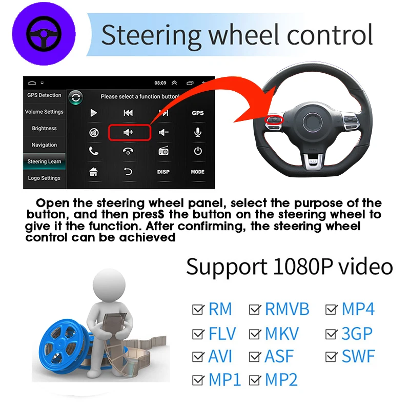 Все автомобильные радиостанции с поддержкой управления рулевым колесом. Большинство моделей могут быть использованы после изучения руля После правильного подключения. Некоторые модели должны быть подключены к CANBUS, plug and play