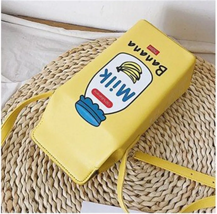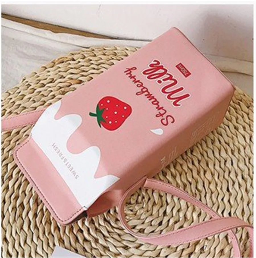 Маленькая сумка через плечо из искусственной кожи с принтом фруктов, милая картонная сумка с клубникой, бананом, молоком, сумка на одно плечо для молодых девушек F380