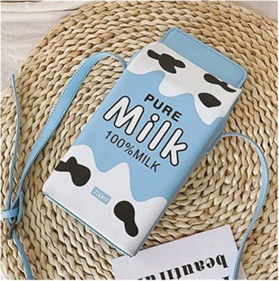Сумка-кошелек женская, с мультяшным принтом, с фруктами, молоком, б...