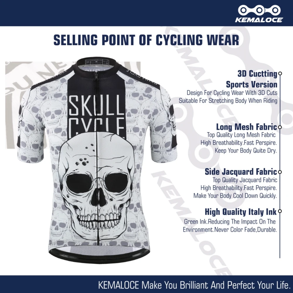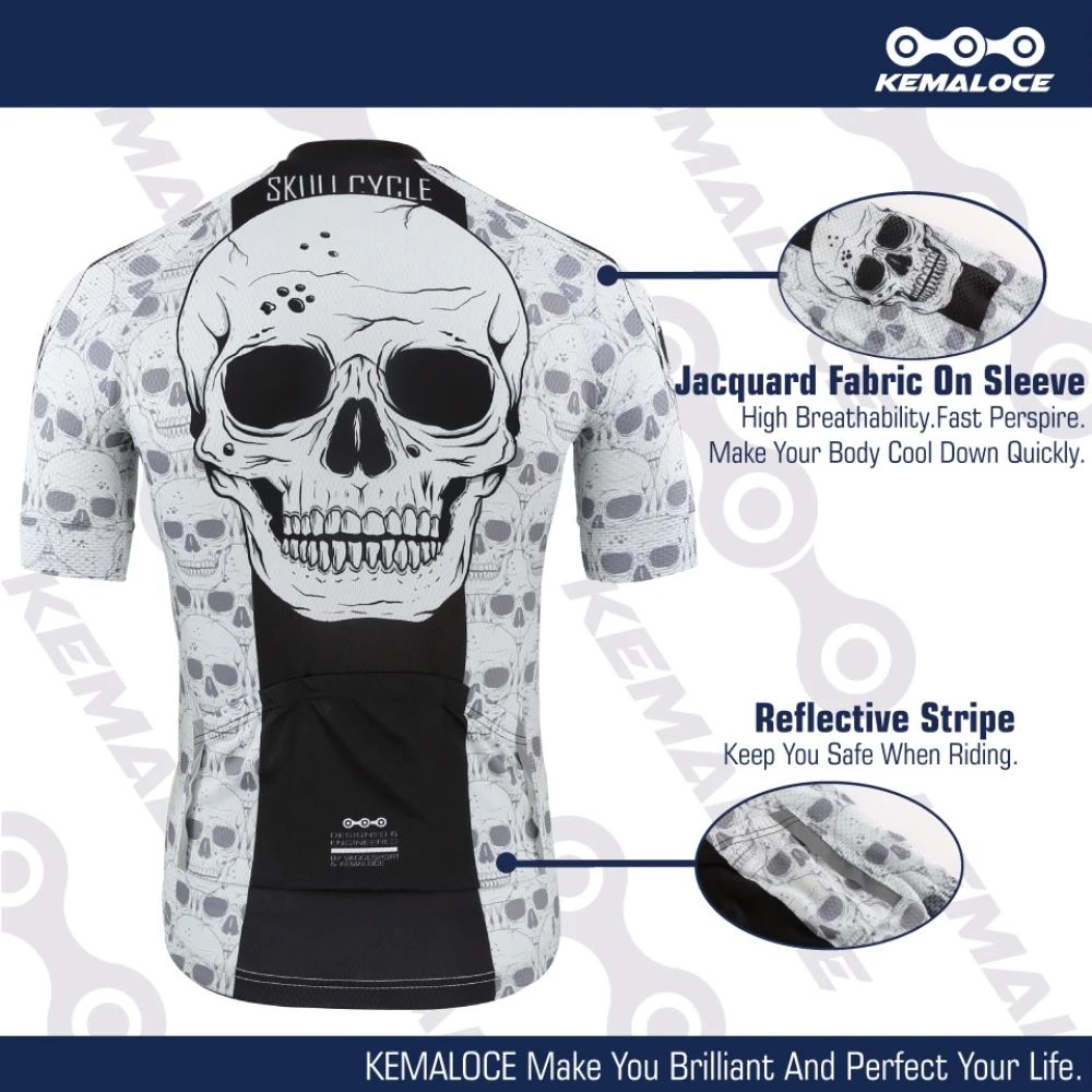 KEMALOCE для мужчин череп с отражающими свойствами велосипедные шорты одежда для защиты от солнца высокого качества велосипед комплект одежды в стиле ретро велосипедный костюм из Джерси