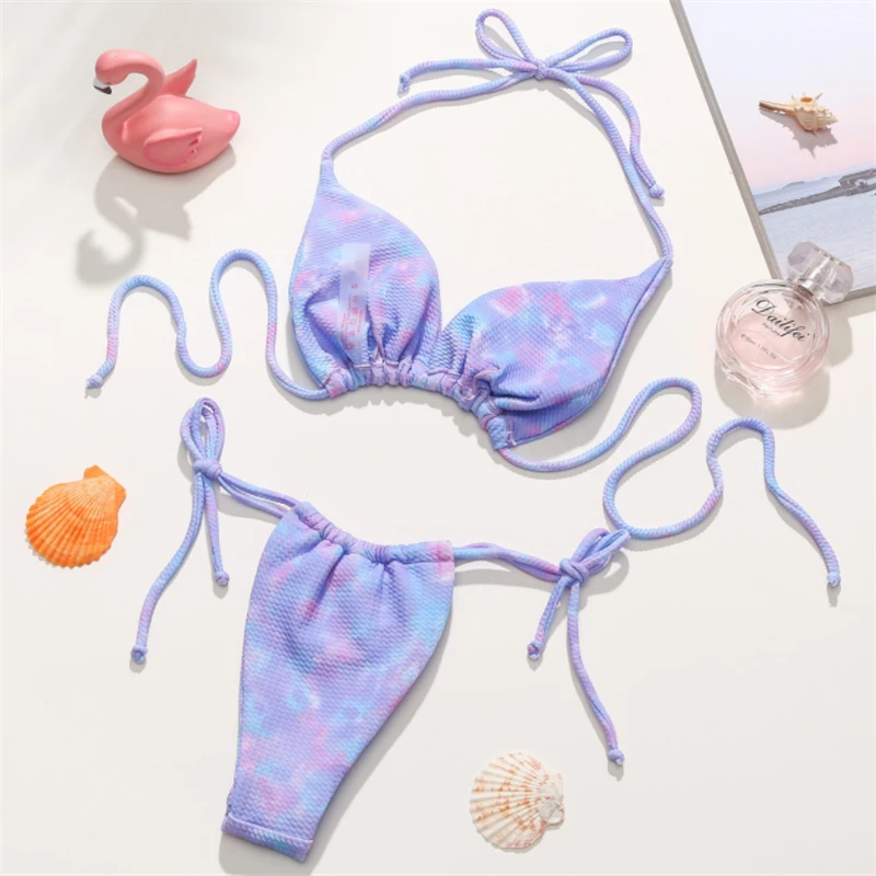 Женский купальник с принтом GNIM, пикантный бандажный комплект бикини из 2 предметов, халтер, стринги, одежда для плавания, Новое поступление 2021