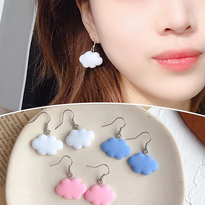 Серьги женские, корейские, с белыми облаками, на День святого Валентина, подарочный набор украшений для ушей