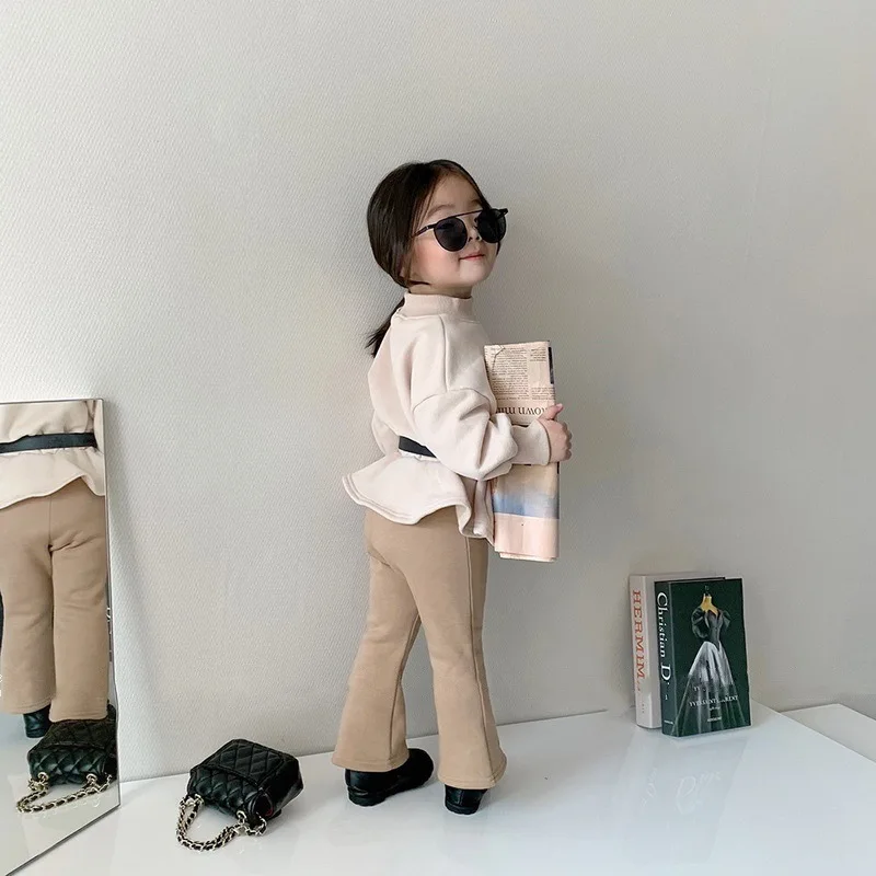 Модный хлопковый свитер для маленьких девочек пуловер с бархатной подкладкой для маленьких девочек верхняя одежда с длинными рукавами и рюшами От 1 до 6 лет с капюшоном