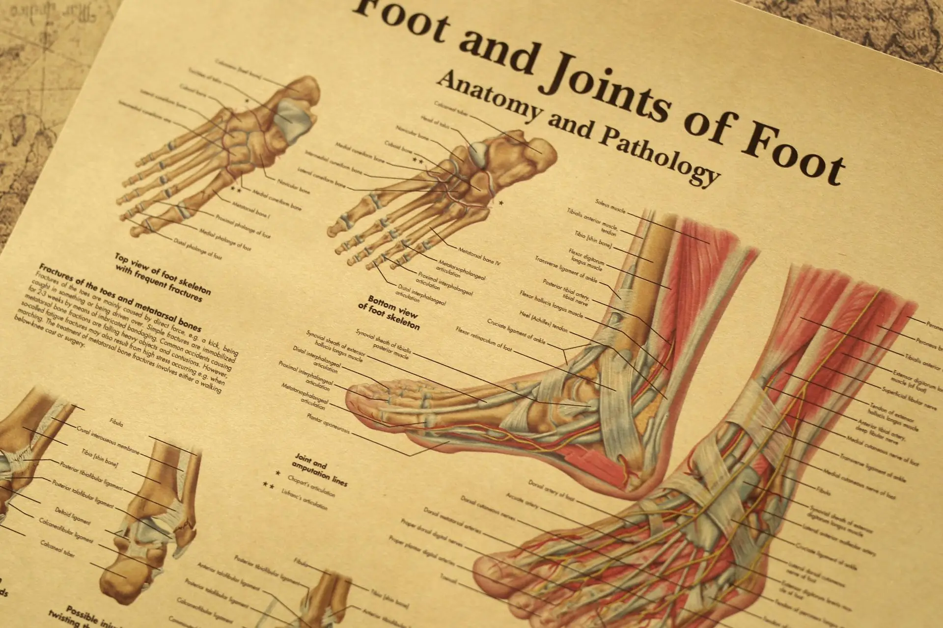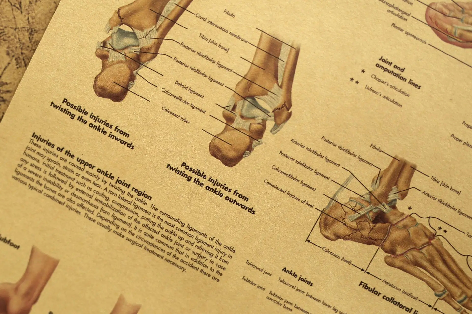 Анатомия и травмы стопы и лодыжки плакат-анатомическая схема стопы и голеностопного сустава