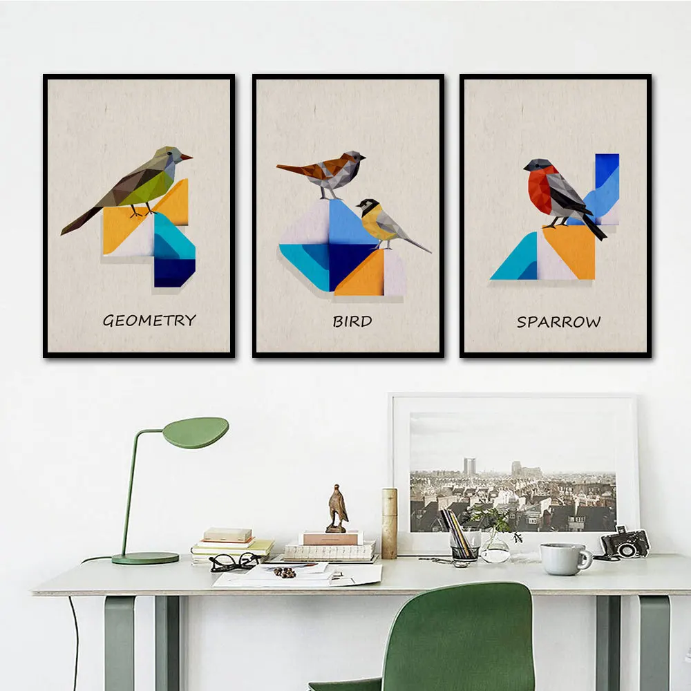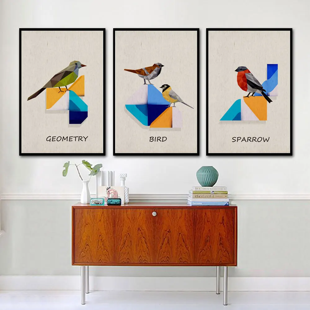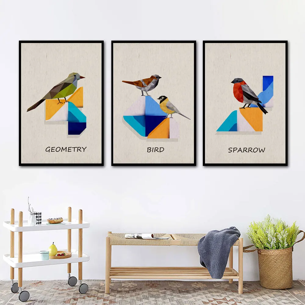 Прекрасный благоприятный птицы скандинавском в виде геометрических фигур Цвет блок настенный художественный холст, рисунки, Постер домашний декор для гостиной, украшения