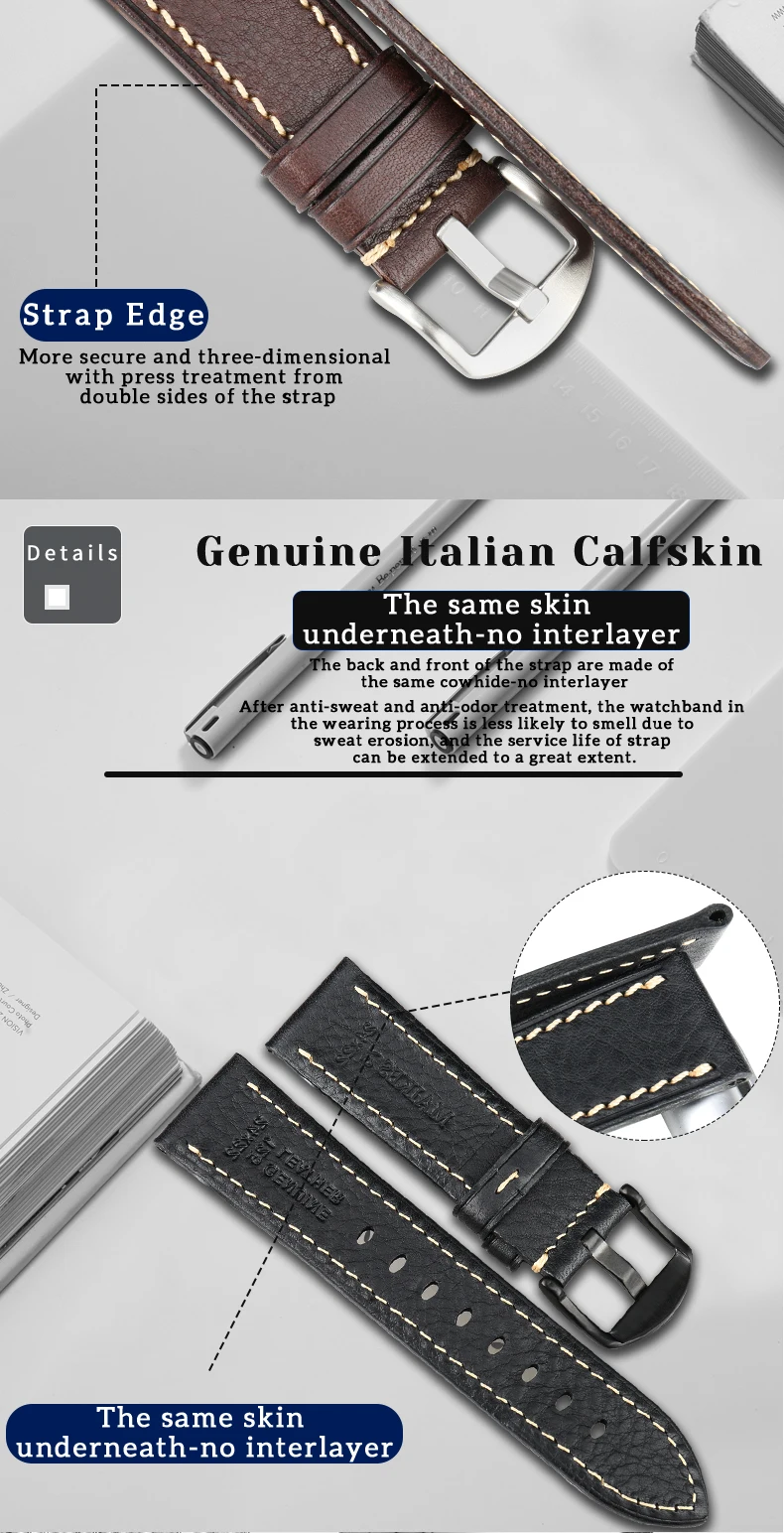 Ремешок для часов из натуральной кожи, 18202224 мм, черныйкоричневый