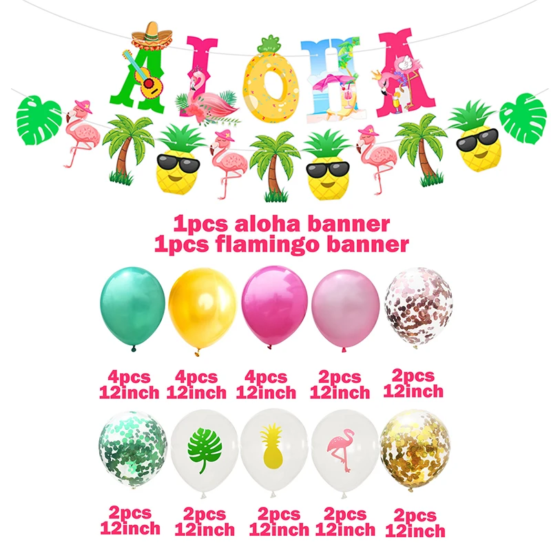 Гавайская вечевечерние декорации Искусственные цветы Пальмовые Листья флажки баннер Luau Фламинго Лето тропивечерние НКА свадебное украшение