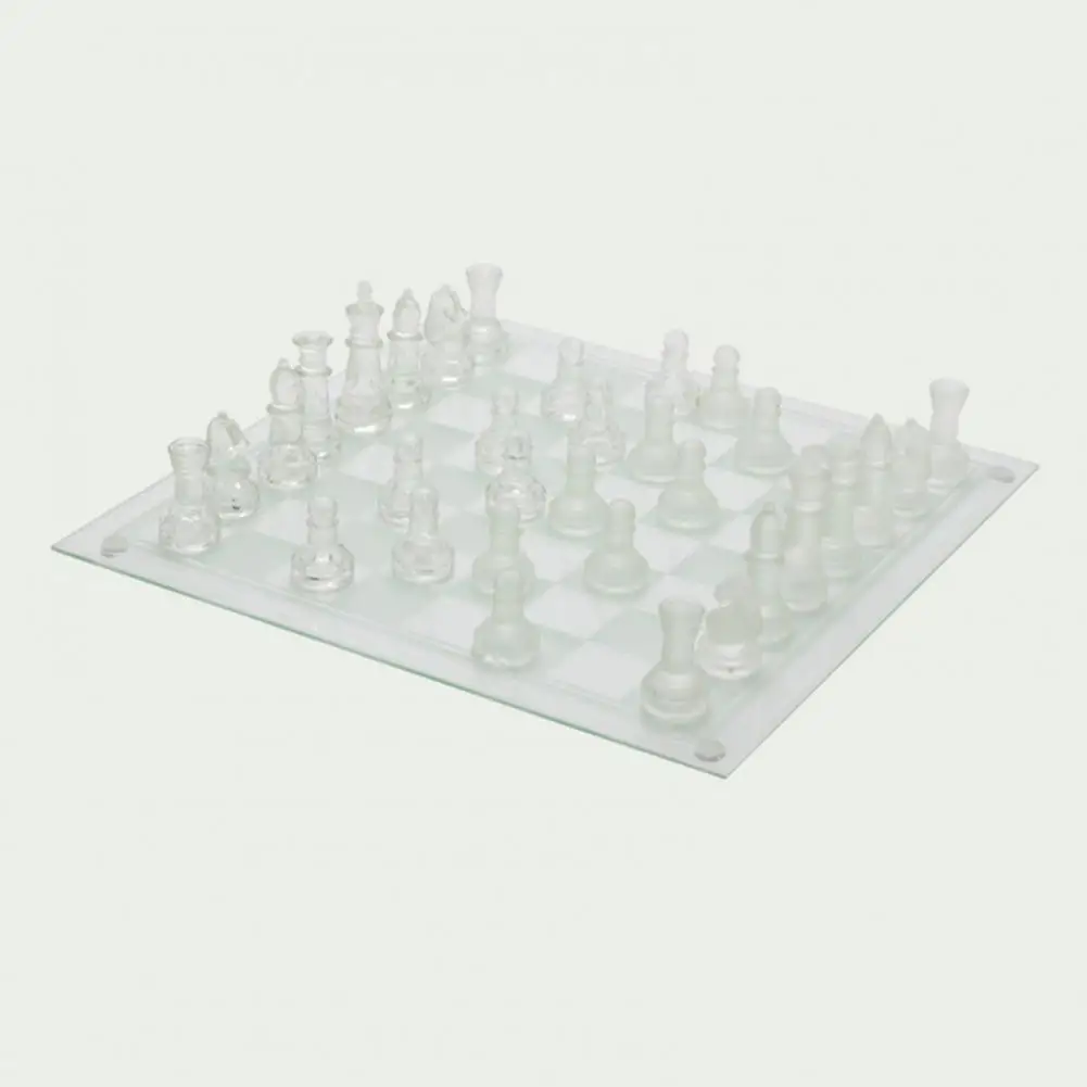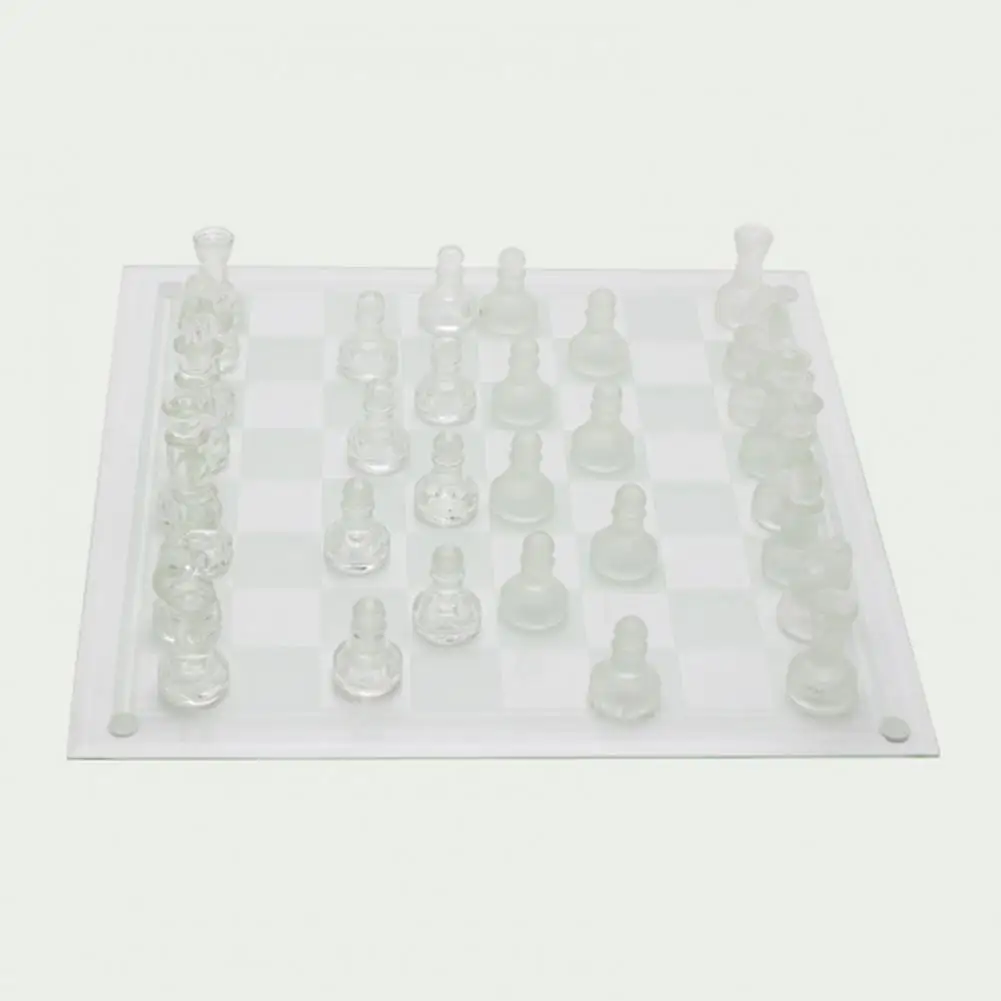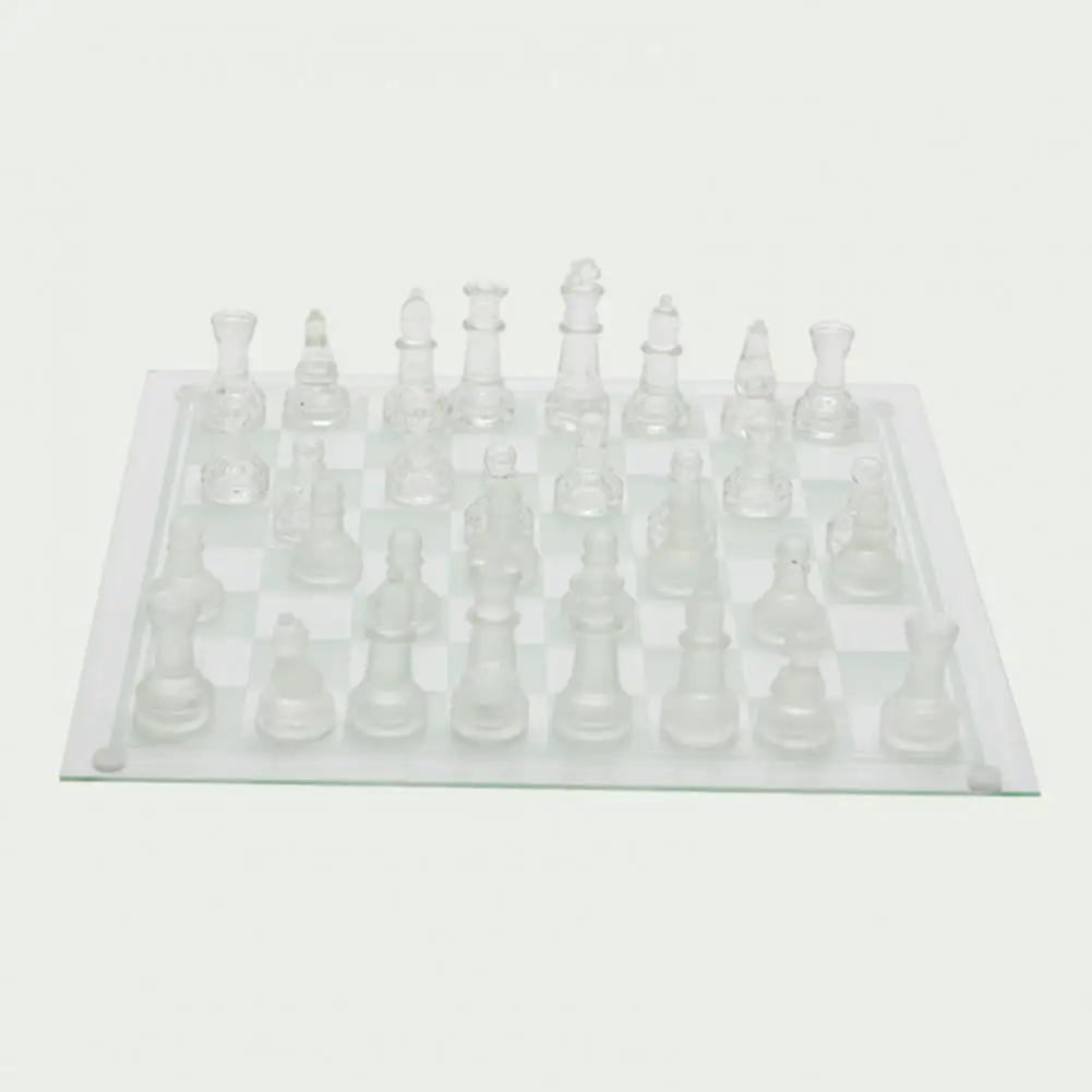 Набор шахматных фигур 25 х25 см из матового искусственного кристалла с шахматной доской, шахматная настольная игра из прозрачного стекла для взрослых, детей, начинающих Вечерние