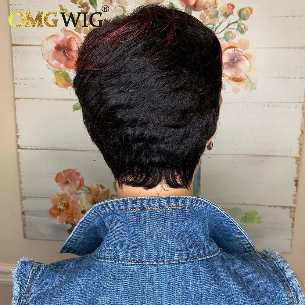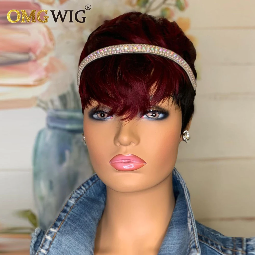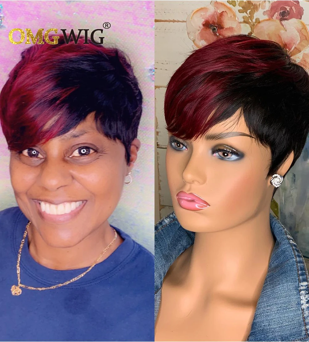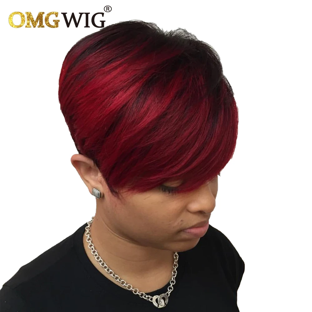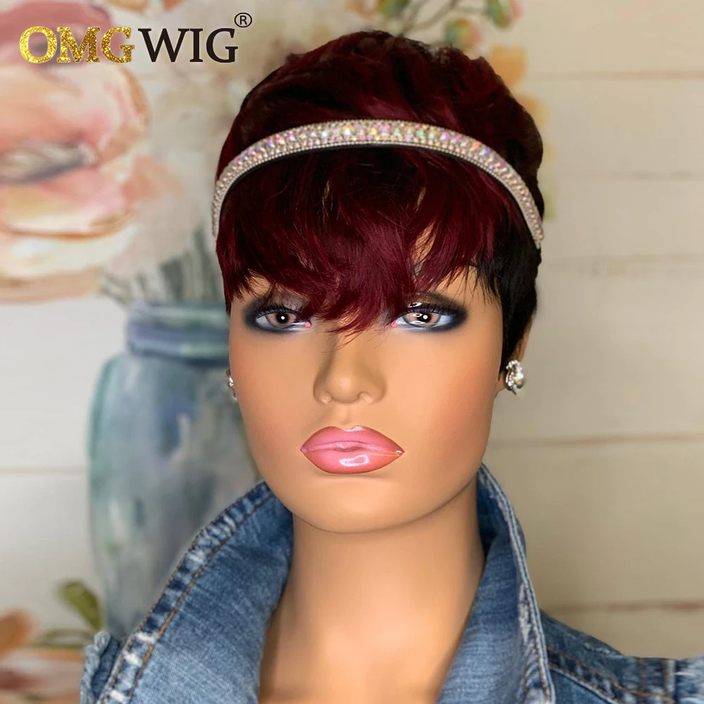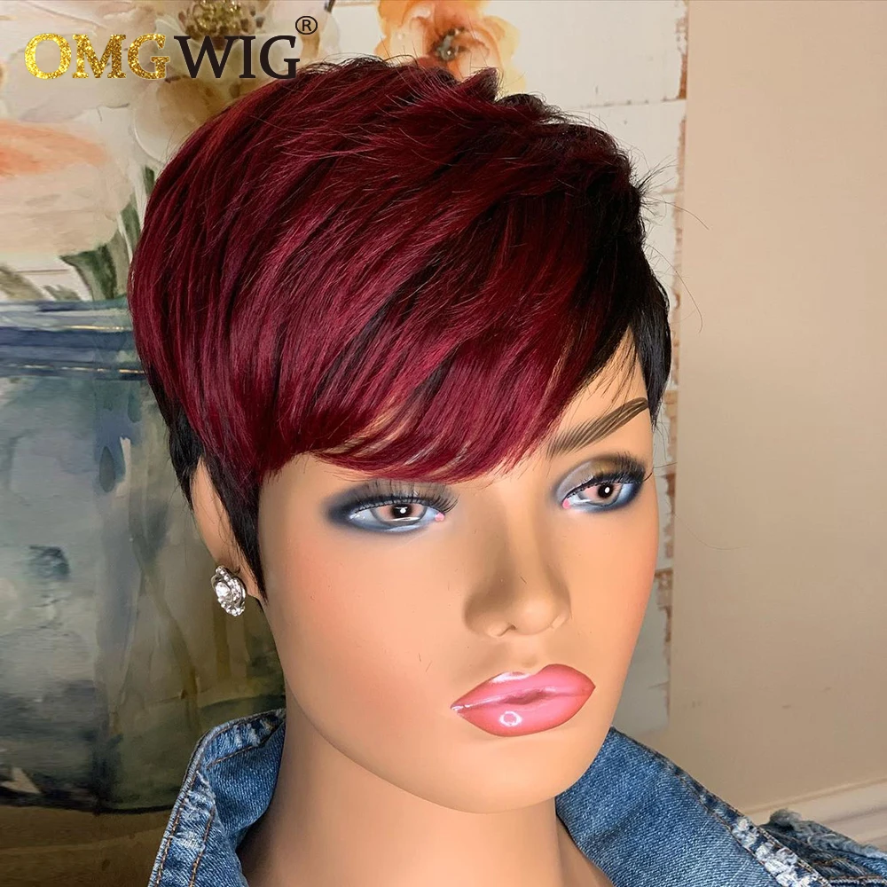 1B/99j бордовый короткий парик Омбре, человеческие волосы, парики с вырезом Пикси для черных женщин, предварительно выщипанный полностью машинный парик Боба с челкой, дешево