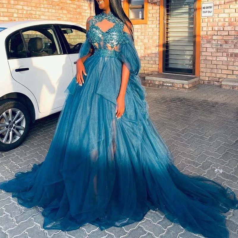 SoDigne с длинным рукавом кружевные вечерние платья 2021 кафтан с высоким воротом ТРАПЕЦИЕВИДНОЕ Тюлевое Платье длинное выпускное платье для вечерние Для женщин торжественное платье
