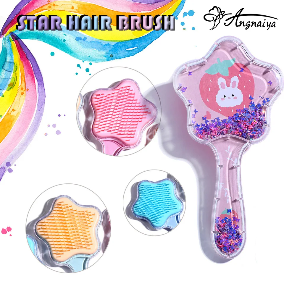 Милый кролик, панда, пятиконечная звезда, Антистатическая щетка для волос, массажная детская расческа для душа, мокрая расческа для волос, инструменты для укладки