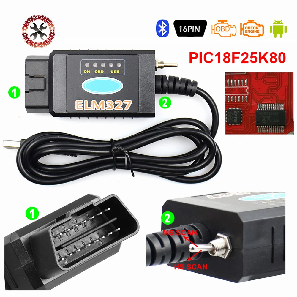 Лидер продаж! Считыватель кодов ELM327 USB FTDI PIC18F25K80 чип elmконфигурации для HS CANMS CAN Forscan ELM 327 Bluetooth OBDII диагностический инструмент