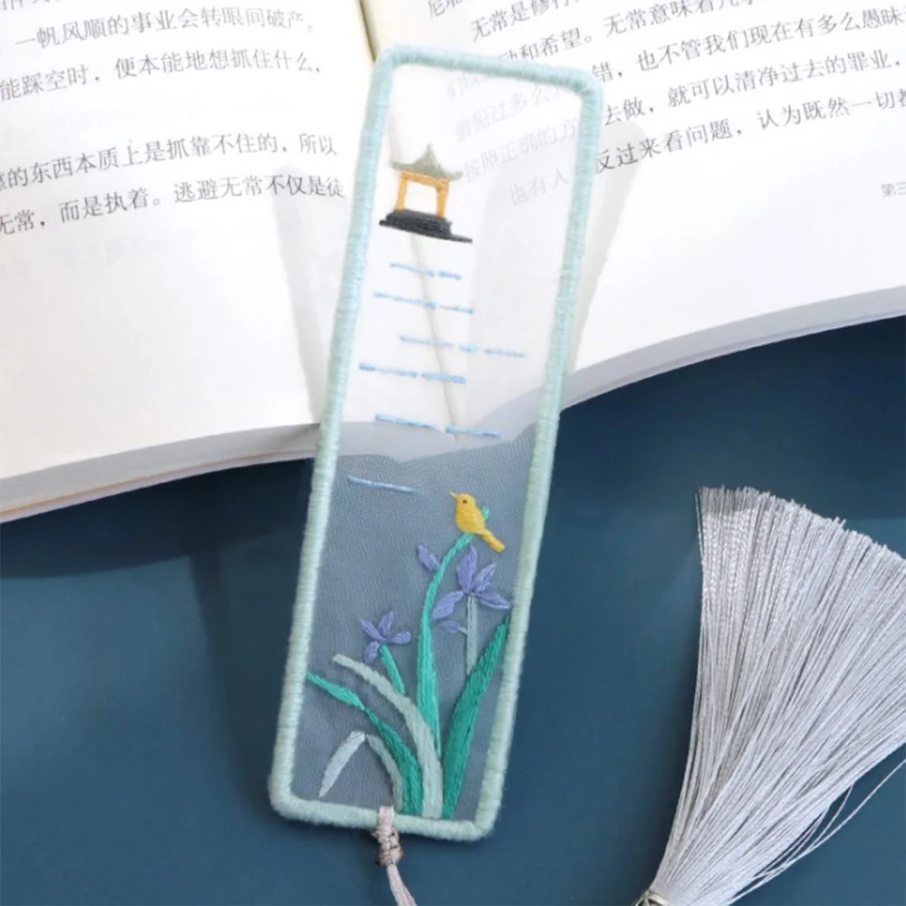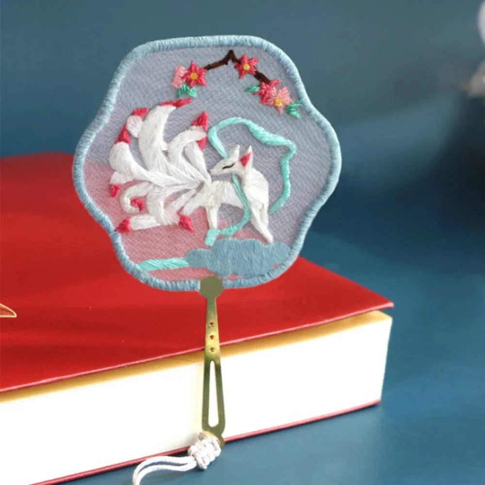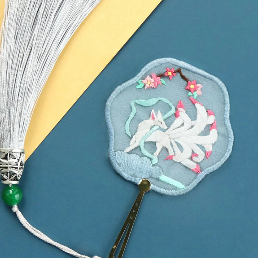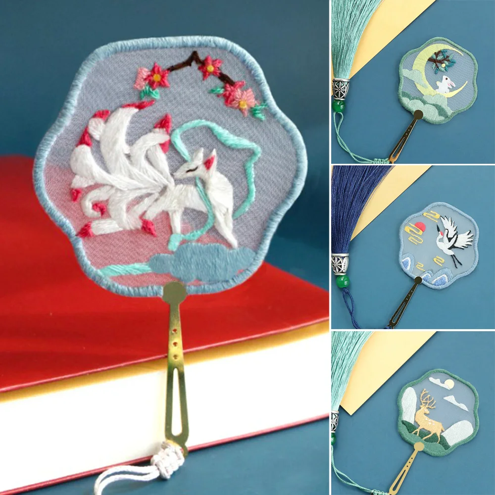 1 шт., новый Веерообразный вышитая книжная Закладка в китайском стиле, рукоделие, ручная роспись, вышивка крестиком, кисточка, закладки, зажимы для книг