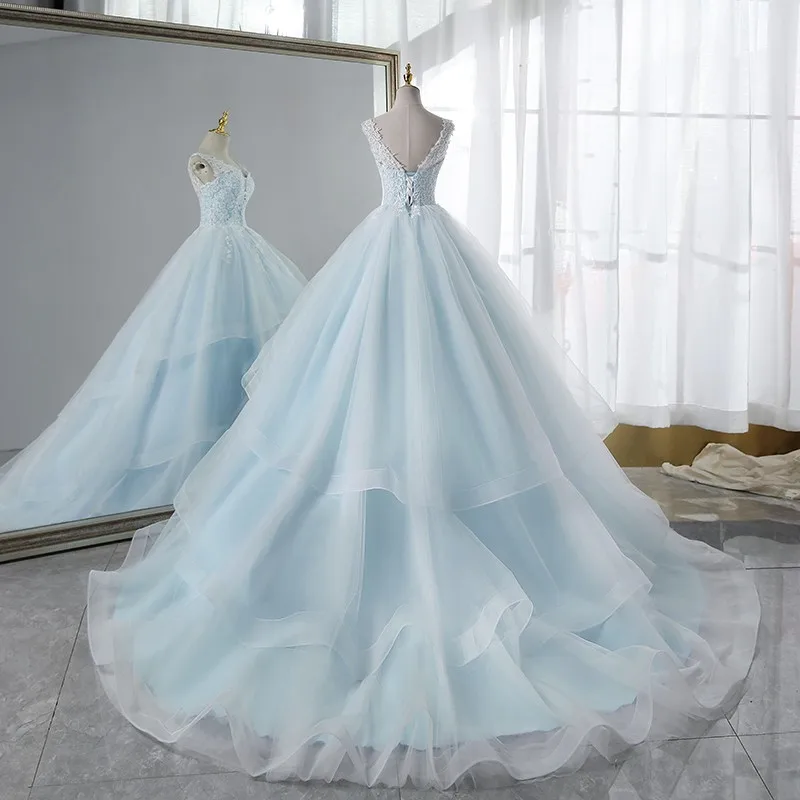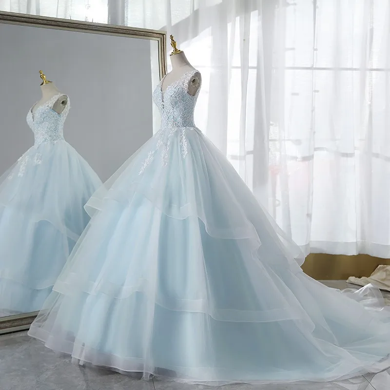 2021 богемное пляжное свадебное платье голубого цвета с двойными кружевными оборками, сексуальное ТРАПЕЦИЕВИДНОЕ платье принцессы с v-образным вырезом и открытой спиной, Vestido De Noiva, 8 цветов