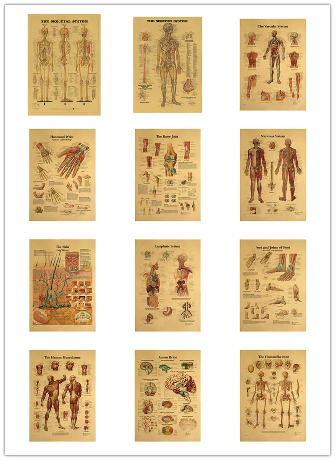 12 шт.компл. медицинские Декор Картина Винтаж плакат тела Структура...