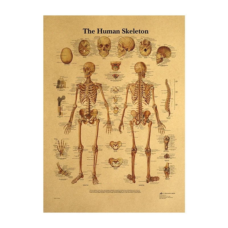 Винтажный медицинский постер скелетная система, декоративные наклей...