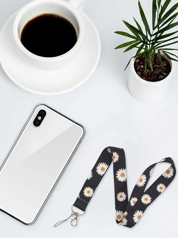 Шнурок с принтом ромашки для ключей, ремешок на шею для телефона, д...