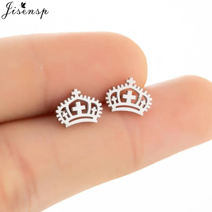 Мультяшные серьги из нержавеющей стали для женщин и девушек, Модная бижутерия, простые пуговицы в виде короны, ключа, лица, гвоздики, ювелирные изделия в виде животных, гвоздики
