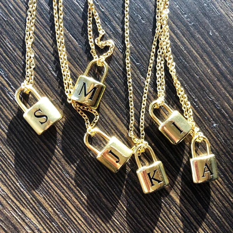 Минимализм A-Z Имя Начальная замок ожерелья для женщин табличка юве...