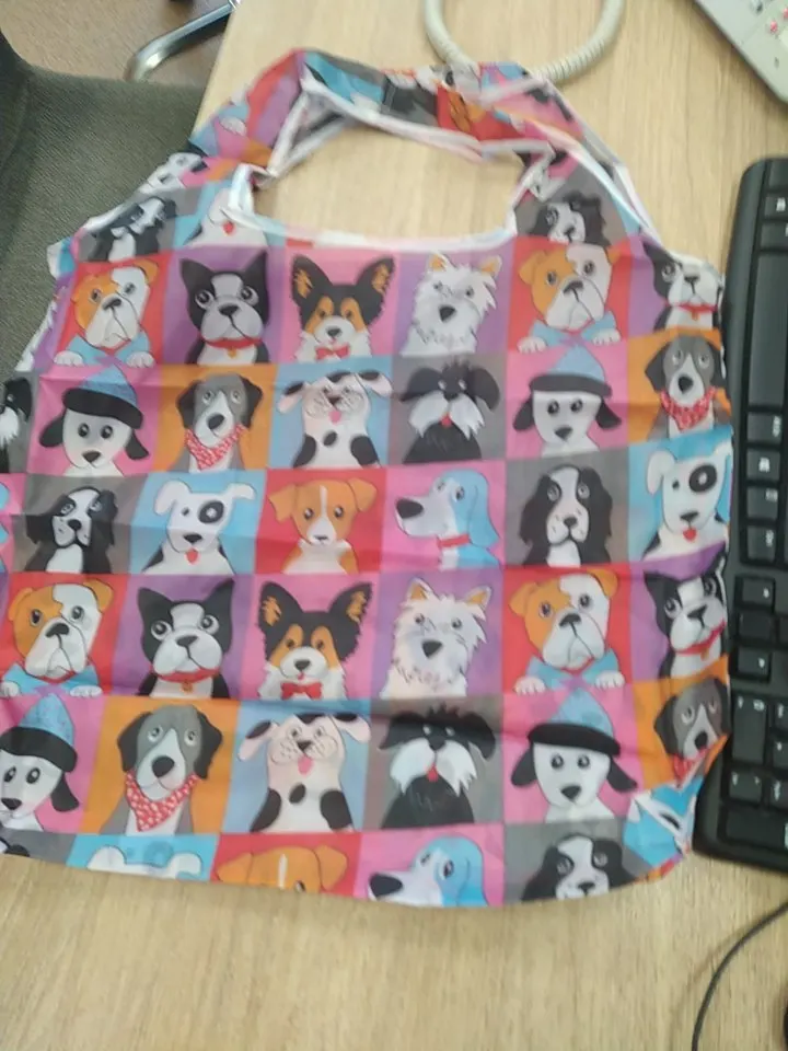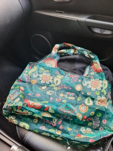 Неплохая сумка, достаточно объемная, но на мой взгляд материал довольно тонкий, не знаю, выдержит ли вес покупок. Удобна тем, что способна сворачиваться в маленький кармашек и вполне себе помещаться в дамской сумочке.