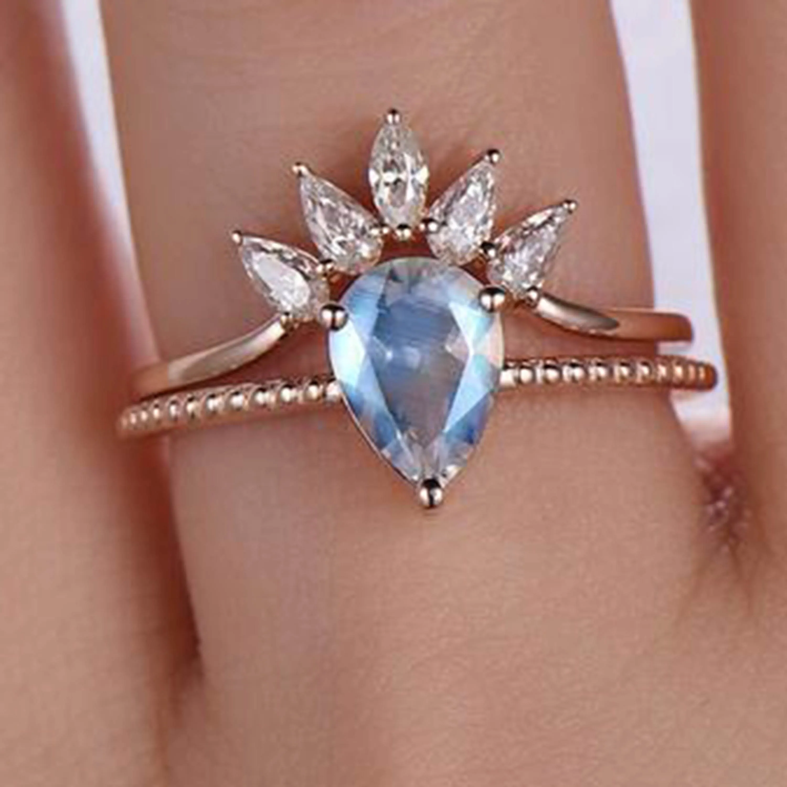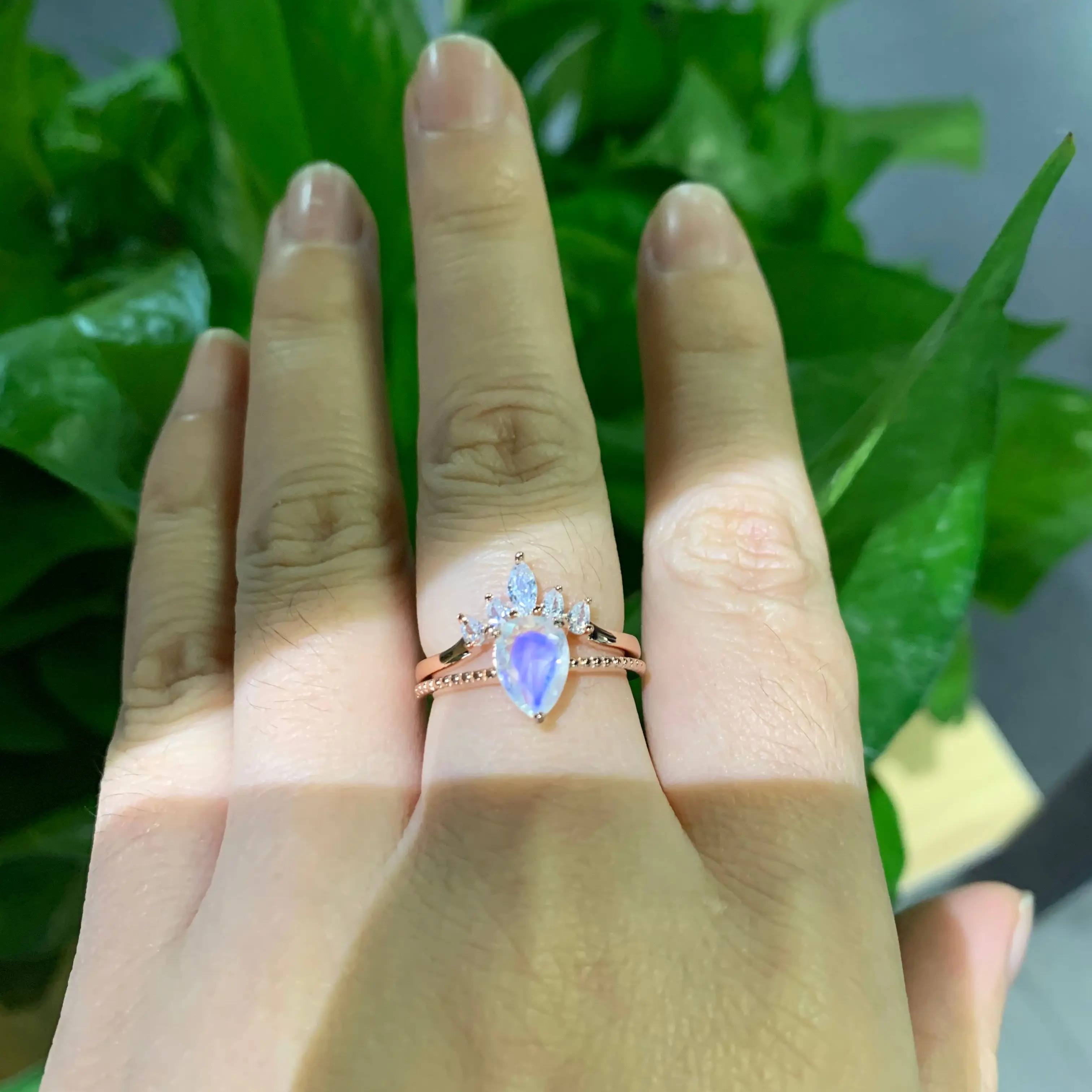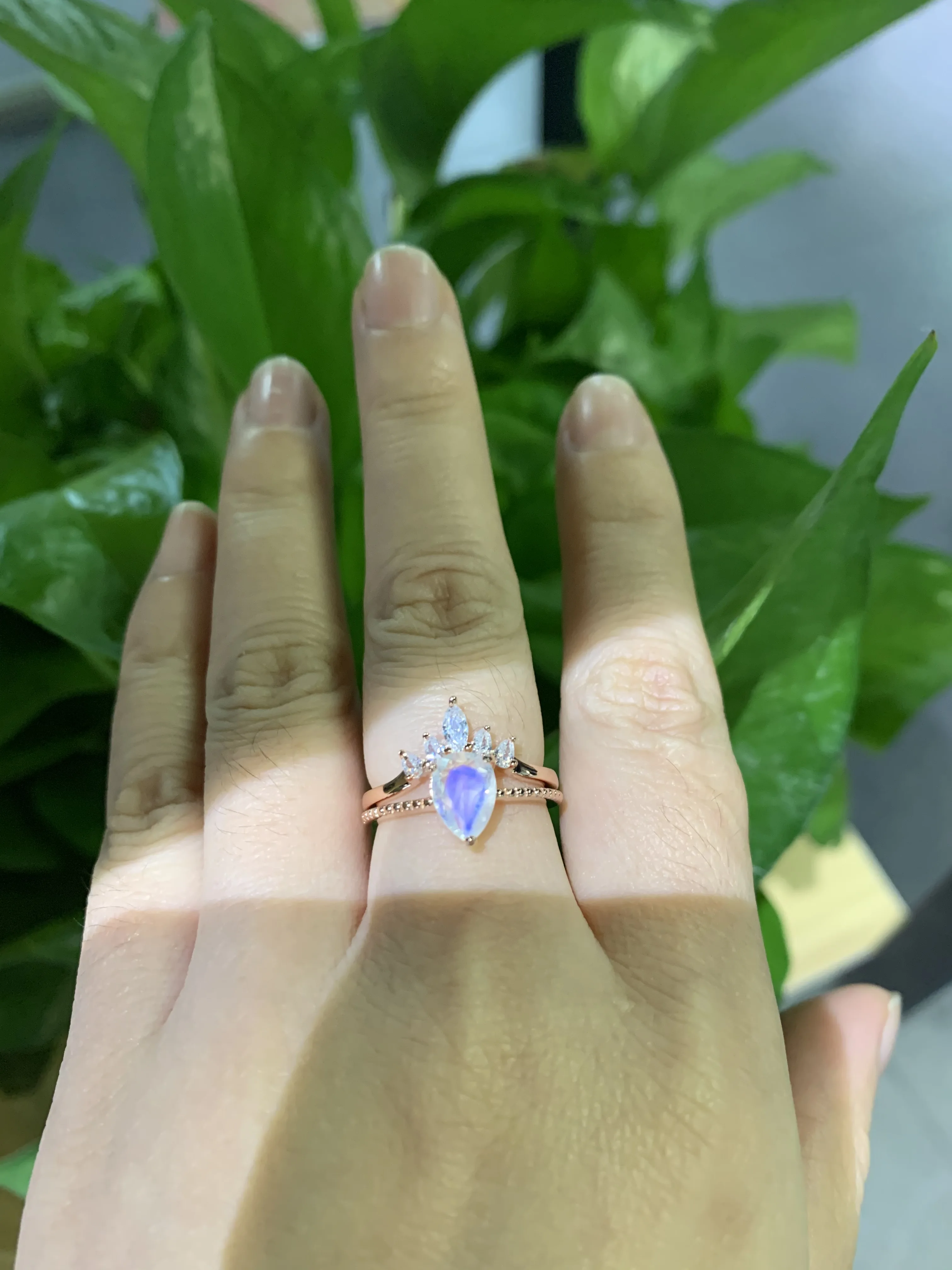 Женское кольцо с лунным камнем, серебро 925 пробы, 6 х8 мм, натуральный лунный камень синего цвета пробы