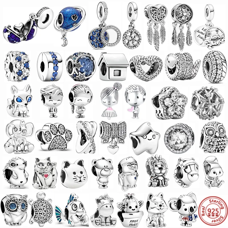 Бусины-подвески Ловец снов для мальчиков и девочек, из серебра 925 пробы, с пером, медведем, лисой, звездами, Луной