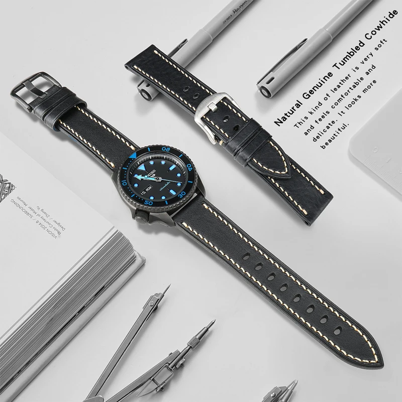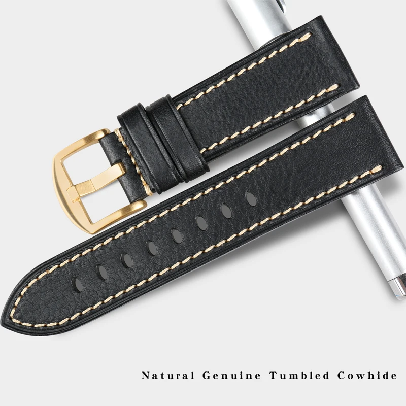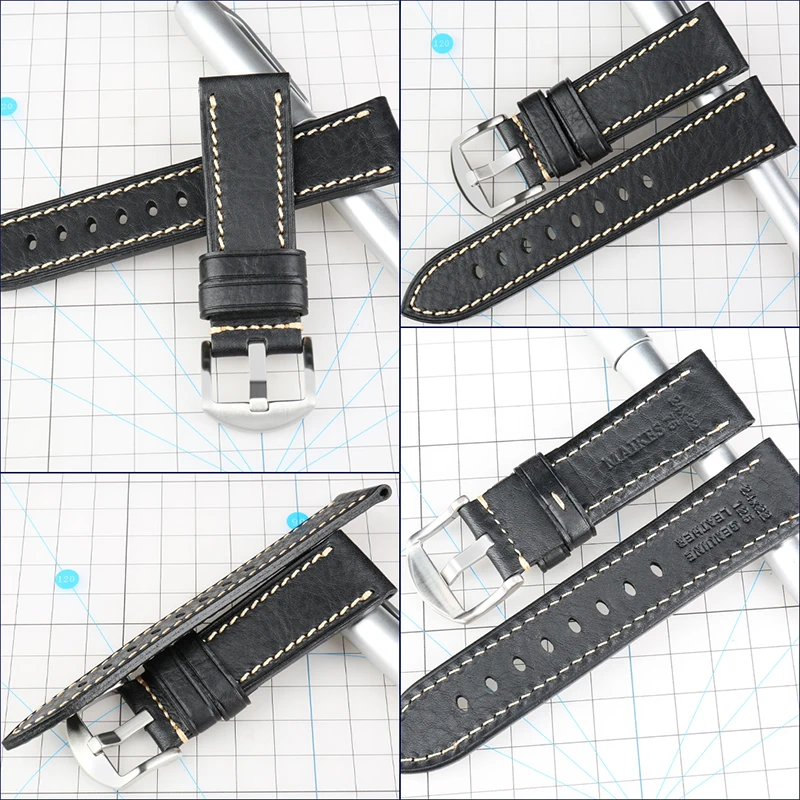 Ремешок для часов из натуральной кожи, 18202224 мм, черныйкоричневый