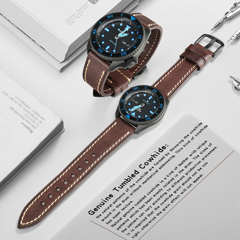 Ремешок MAIKES из натуральной кожи для наручных часов, винтажный браслет со стальной пряжкой, для умных часов 18 мм 20 мм 22 мм