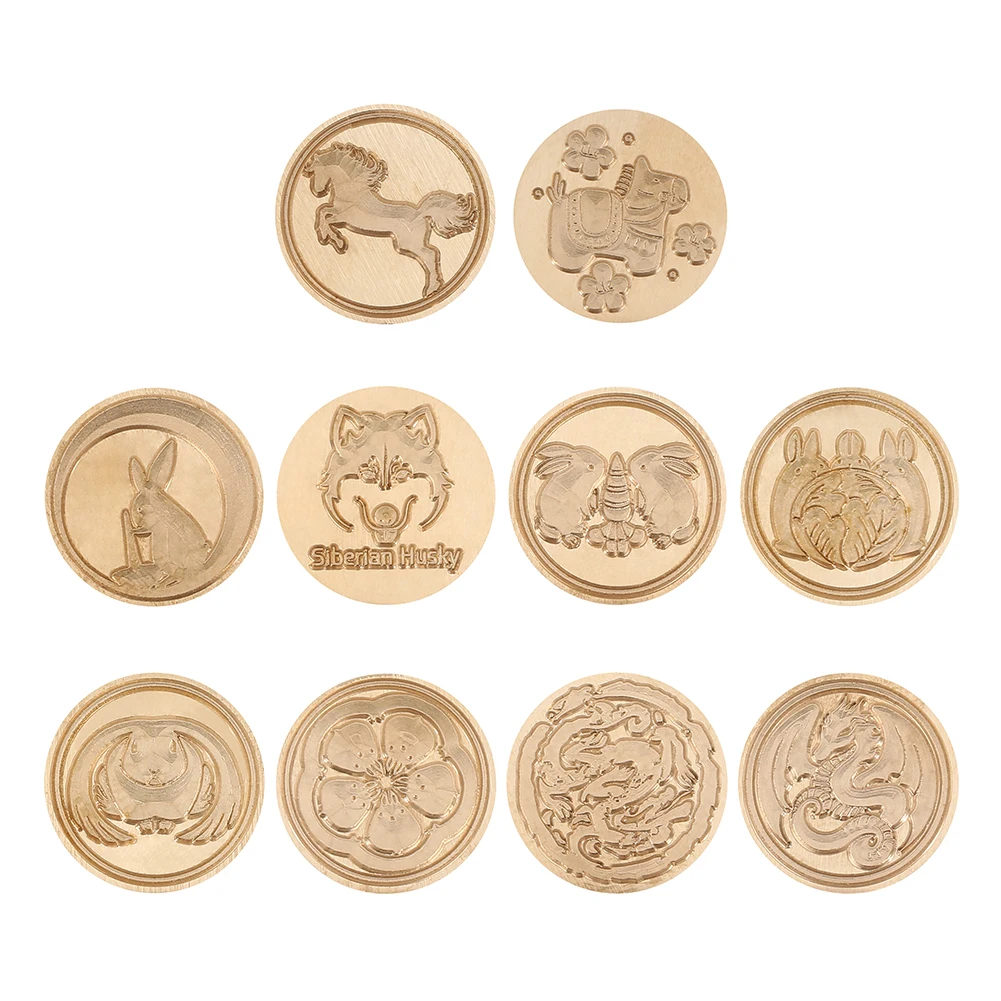 Серия животных 25 мм восковая уплотнительная головка восковая круглая медная головка позолоченная латунная уплотнительная головка для украшения приглашений сделай сам