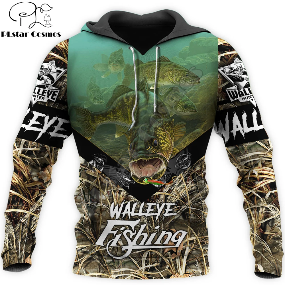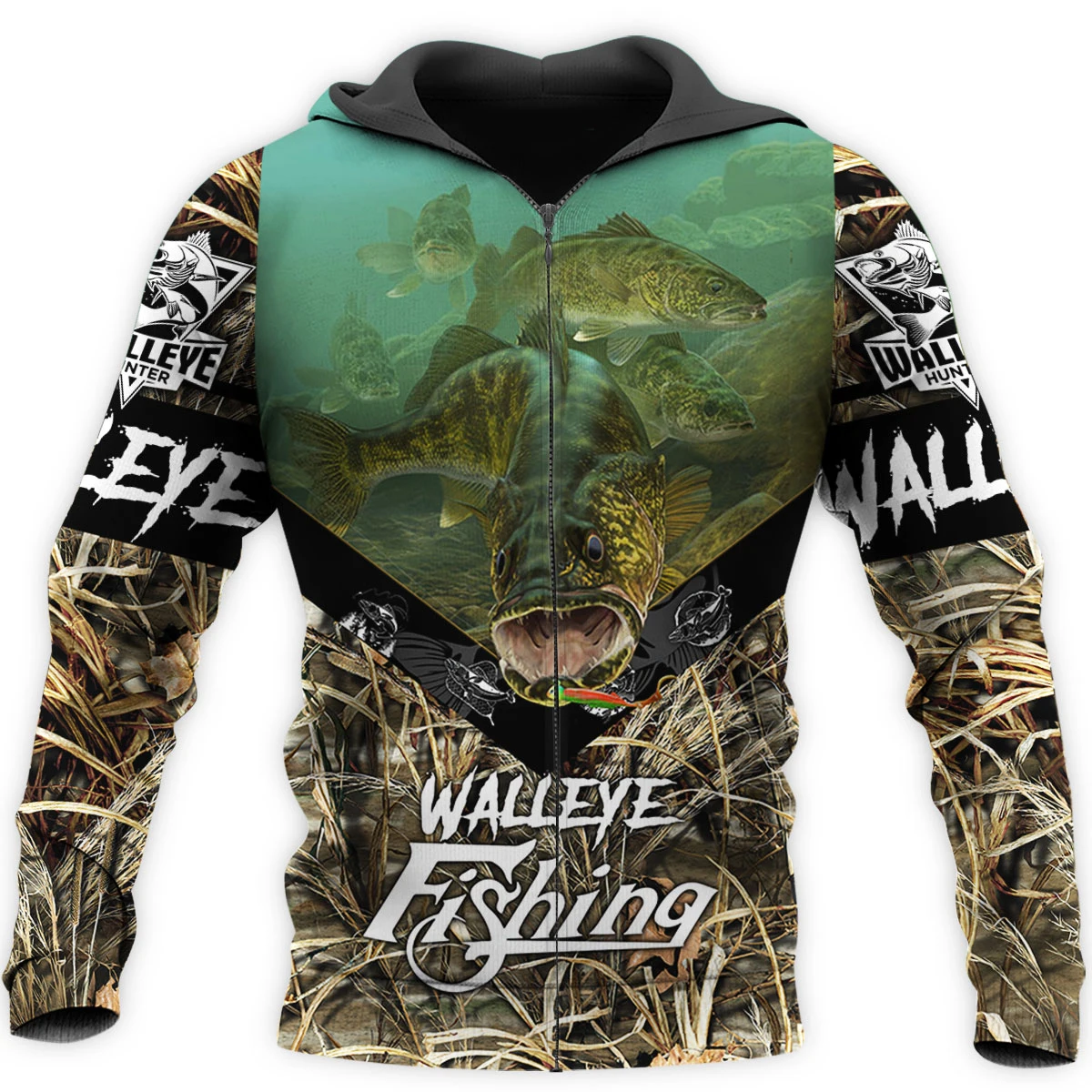 Красивые Судак Рыбалка 3D все напечатано, мужская толстовка с капюшоном, одежда в стиле унисекс, одежда толстовка на молнии пуловер Повседневный Спортивный костюм для мальчиков KJ333
