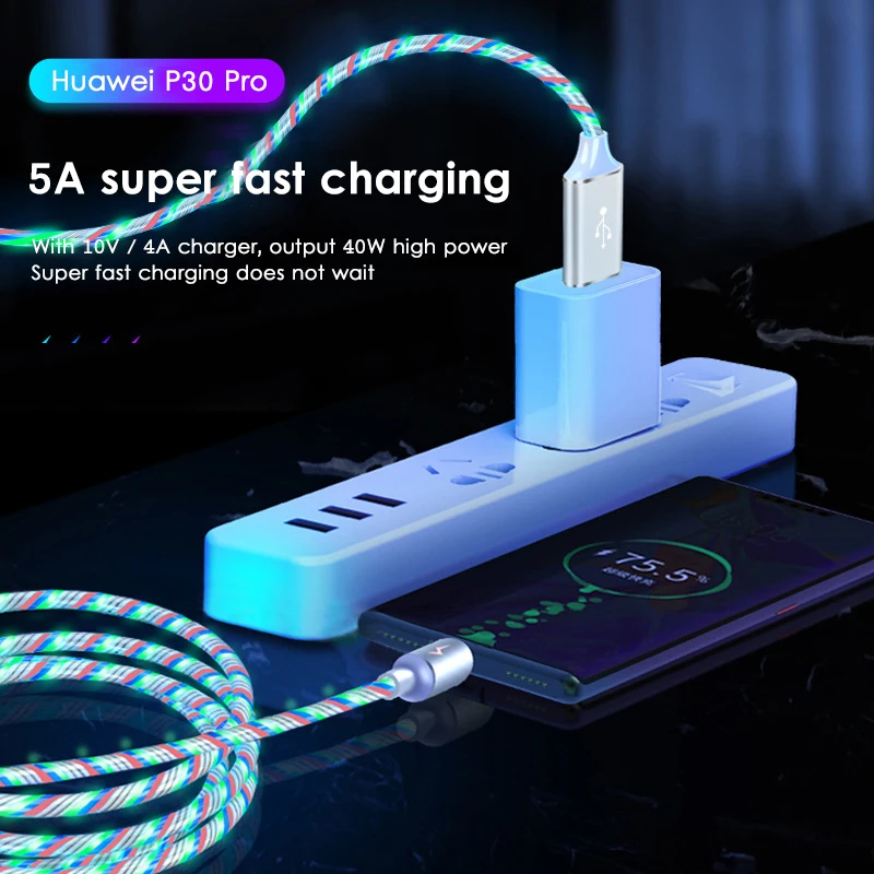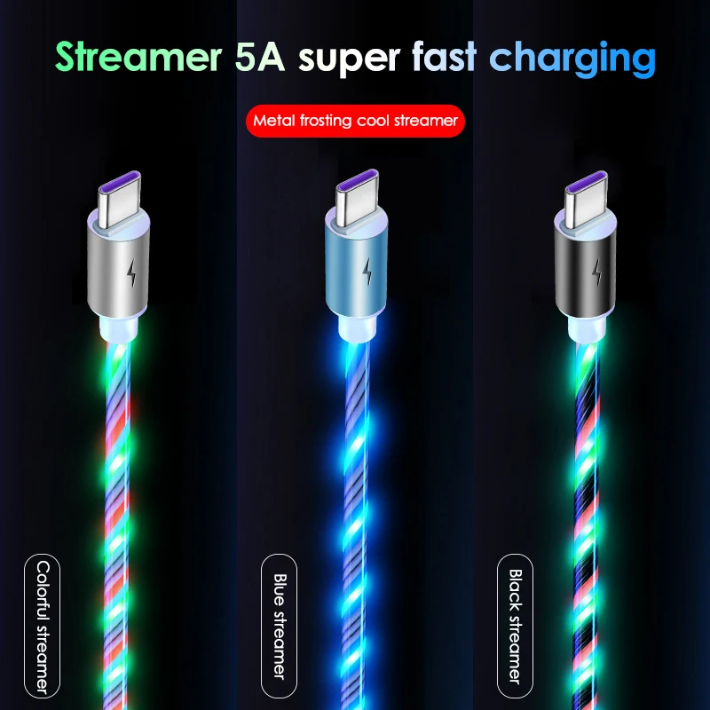 Зарядный кабель USB Type-C со светодиодной подсветкой, 5 А
