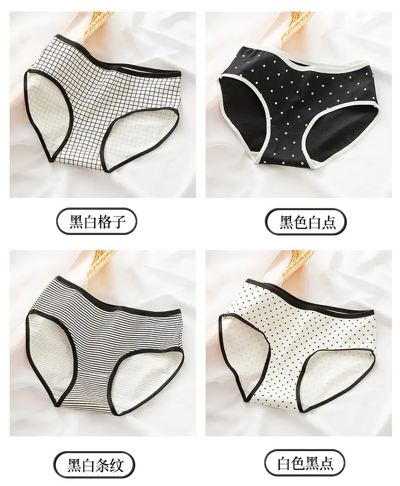 Сексуальные Черно-белые полосатые трусики, женские хлопковые милые ...
