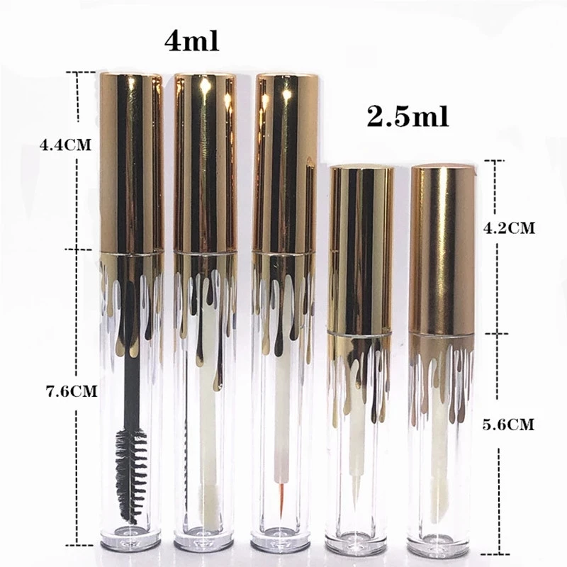 10 Вт, 30 Вт, 50 шт. 2,5 мл 4 мл пустые блеска для губ, DIY ясно тюбики для туши для ресниц с золотым Кепки, косметическая подводка для глаз многоразового контейнеры